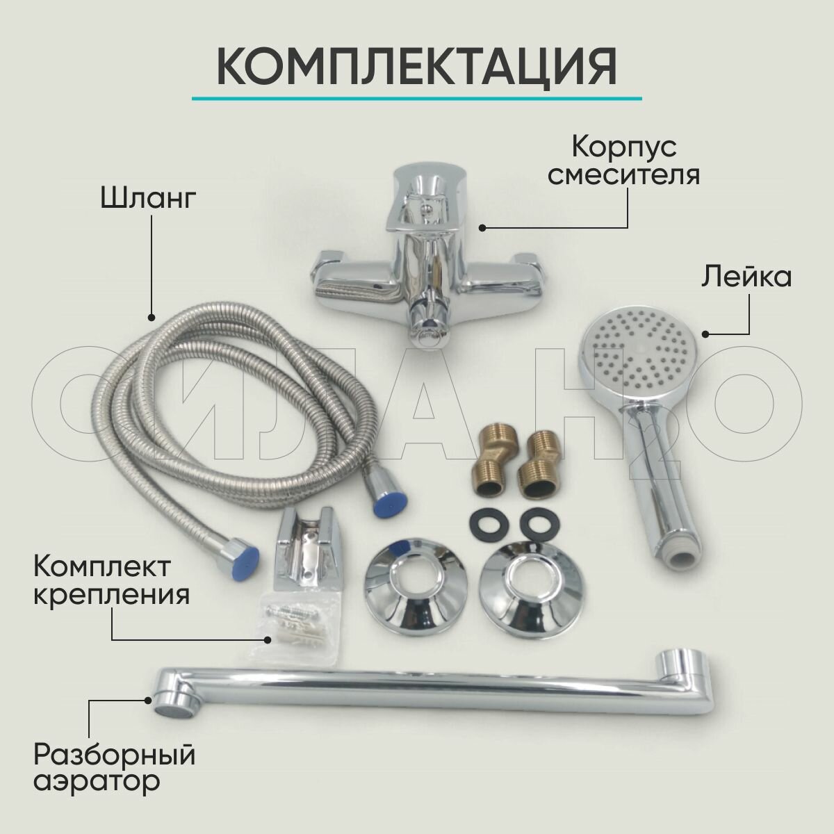 Смеситель для ванны BT-1017 с душем, длинный излив 30 см, цинковый сплав, хром
