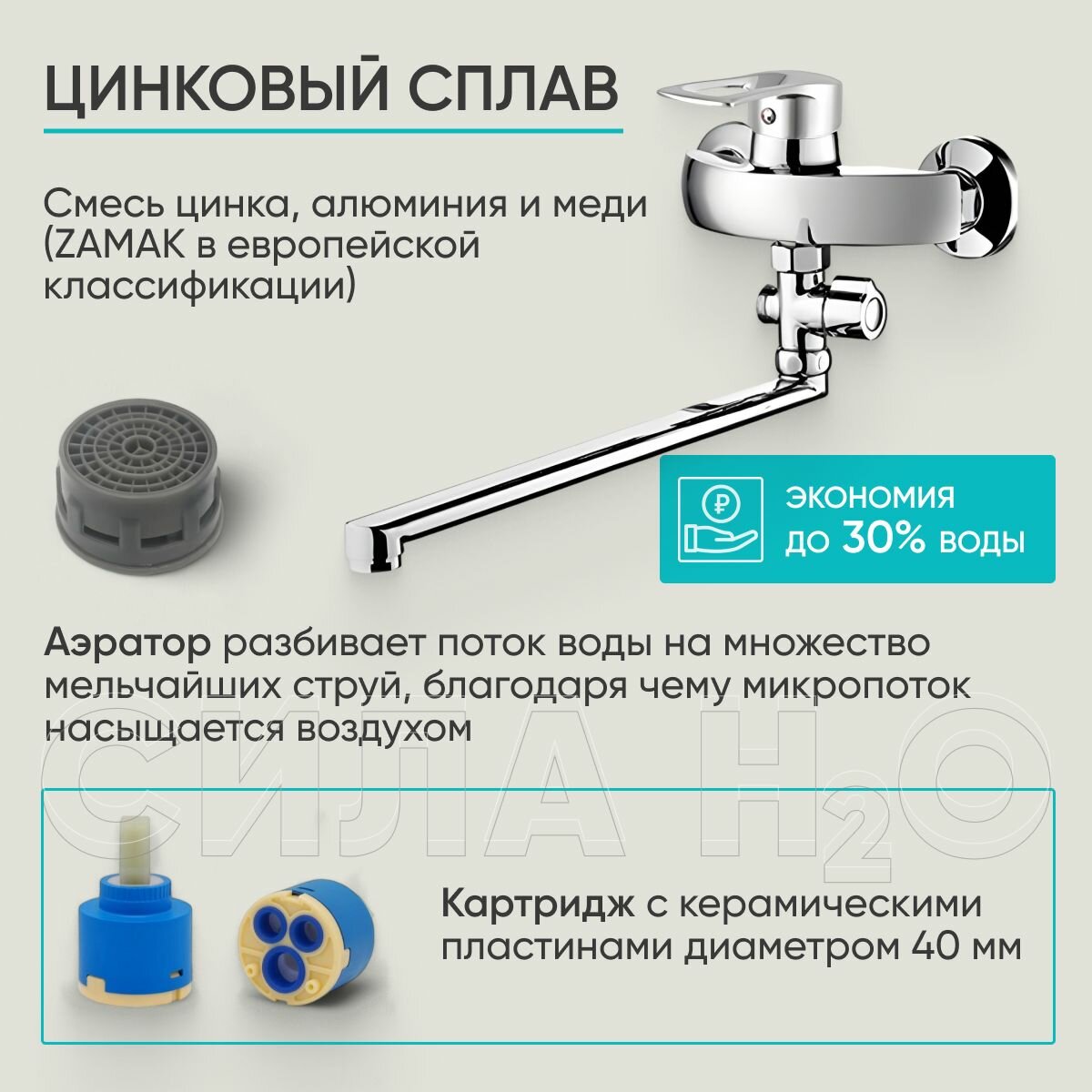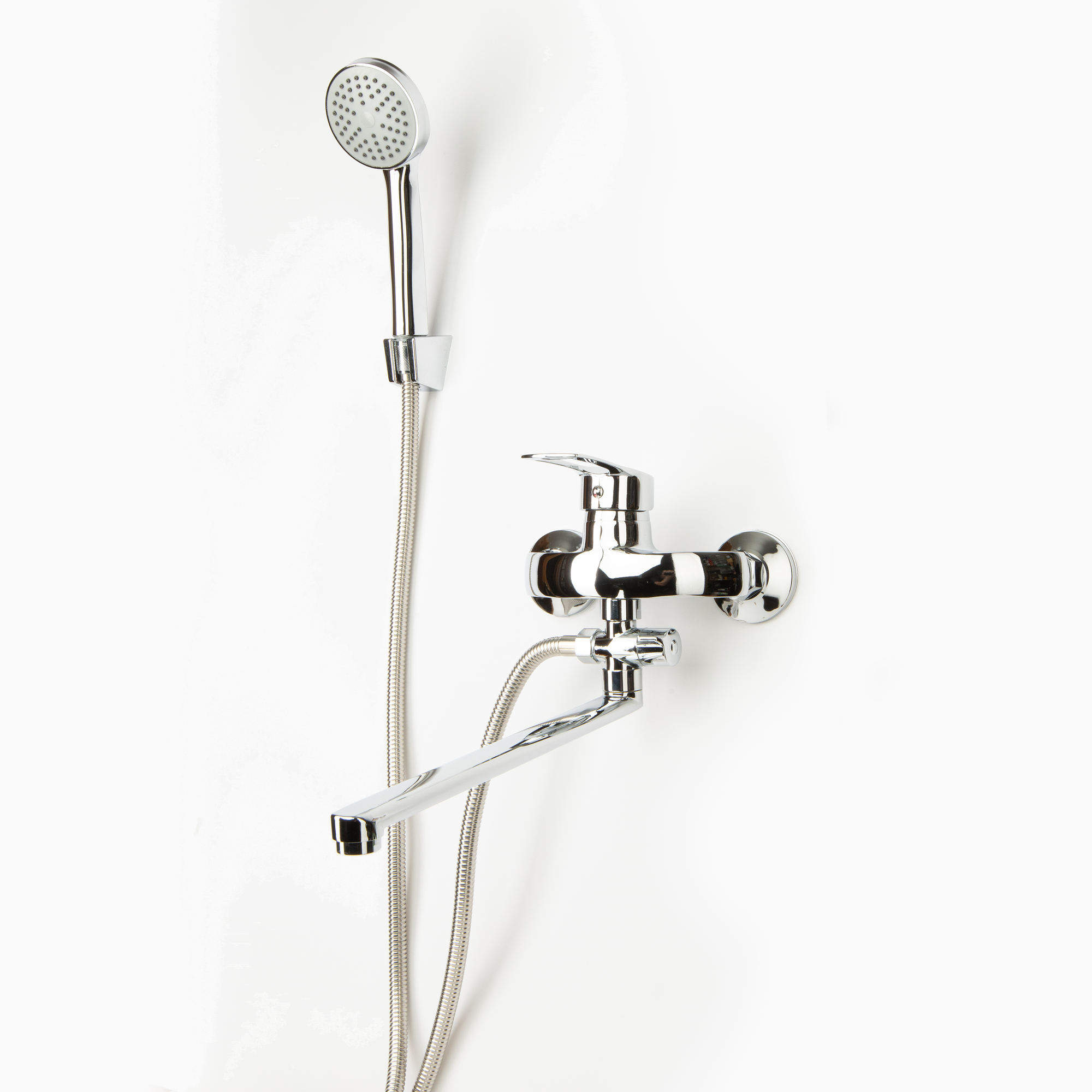 Смеситель для ванны, поворотный, длинный излив 30 см, с душем, хром интересное: