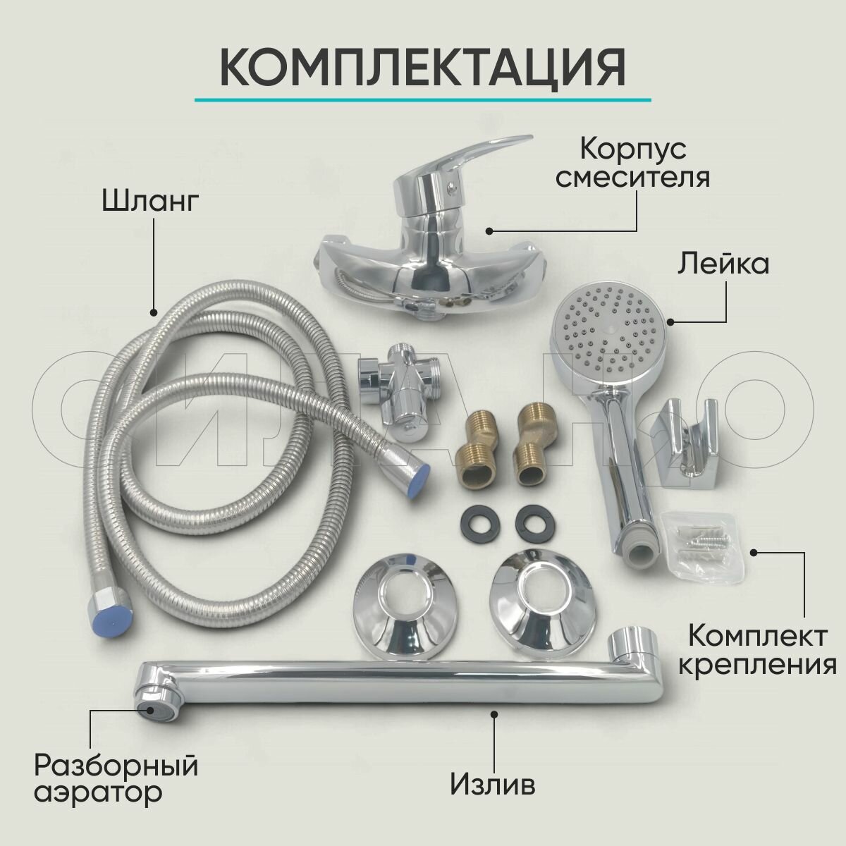 Смеситель для ванны BT-1017 с душем, длинный излив 30 см, цинковый сплав, хром