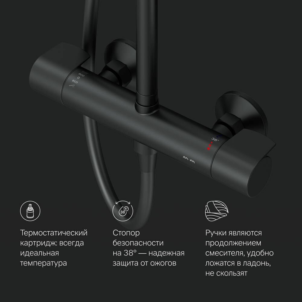 Душевая система с тропическим душем AM.PM Brava черный матовый, без излива, телескопическая штанга интересное: