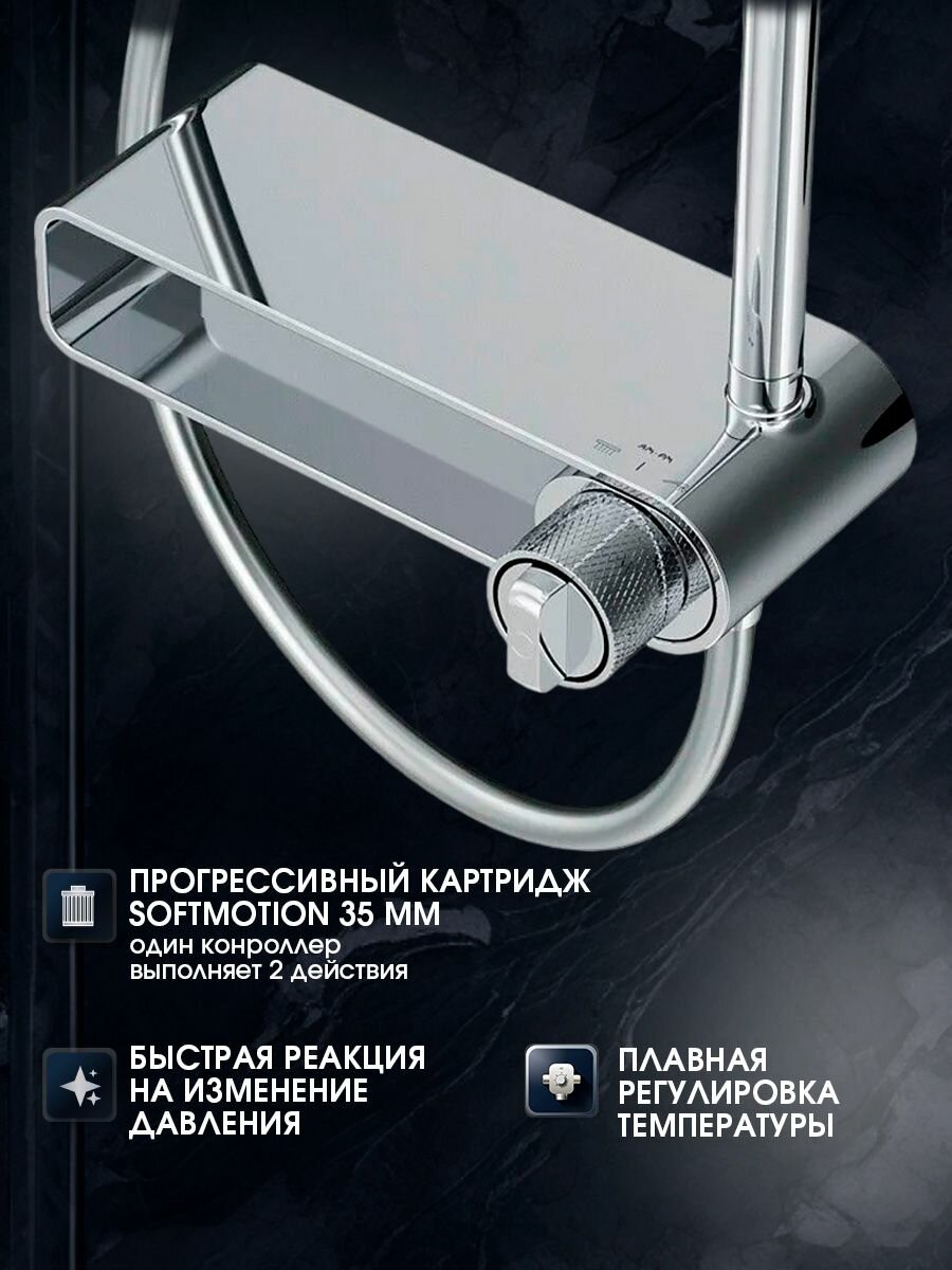 Душевая система с тропическим душем AM.PM Brava смесителем хром, с полкой, без излива, прогрессивный картридж интересное:
