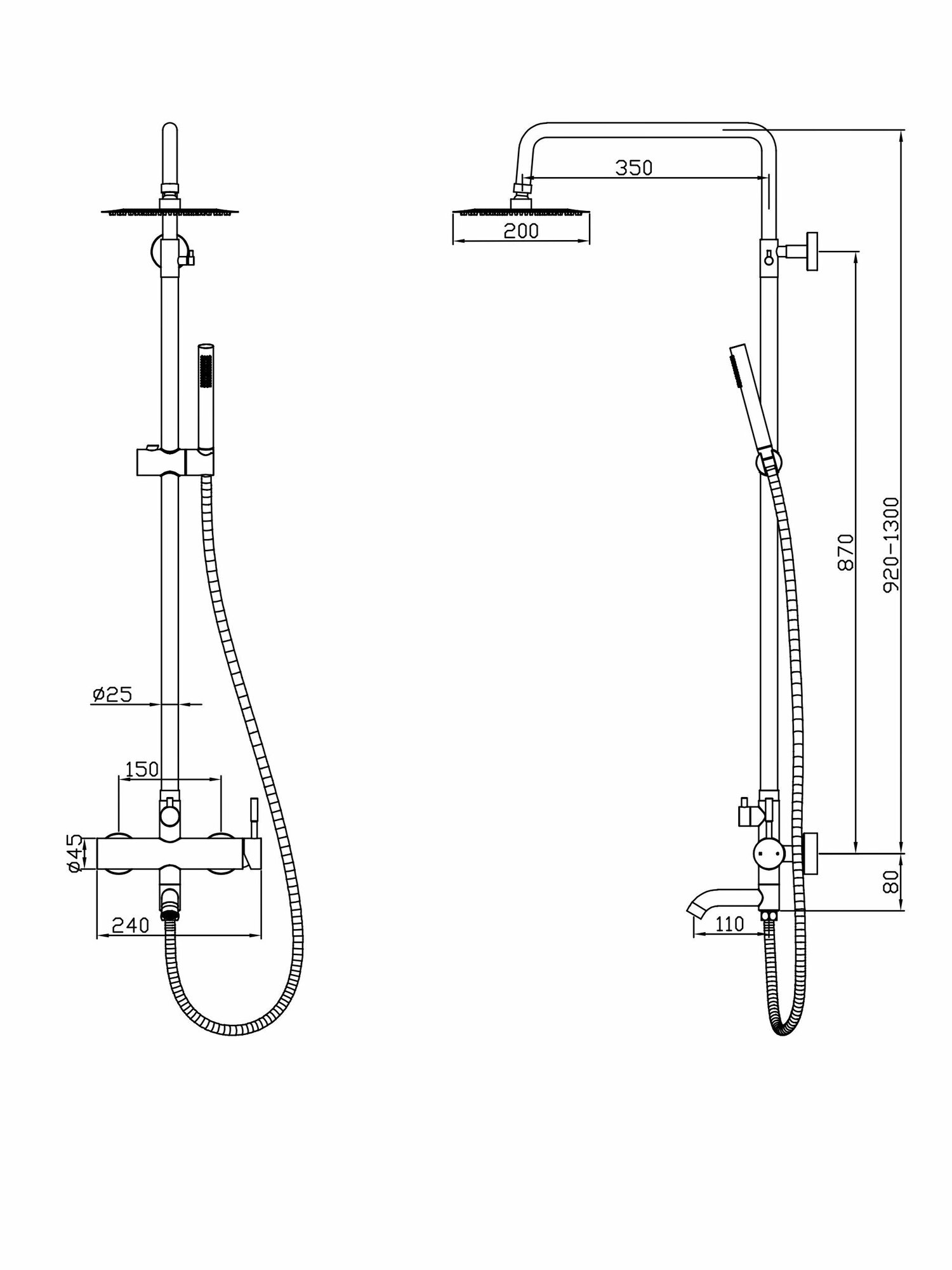 Комплект душевой Floracio Tube F.810. GM (F.30111+F.910) вороненая сталь