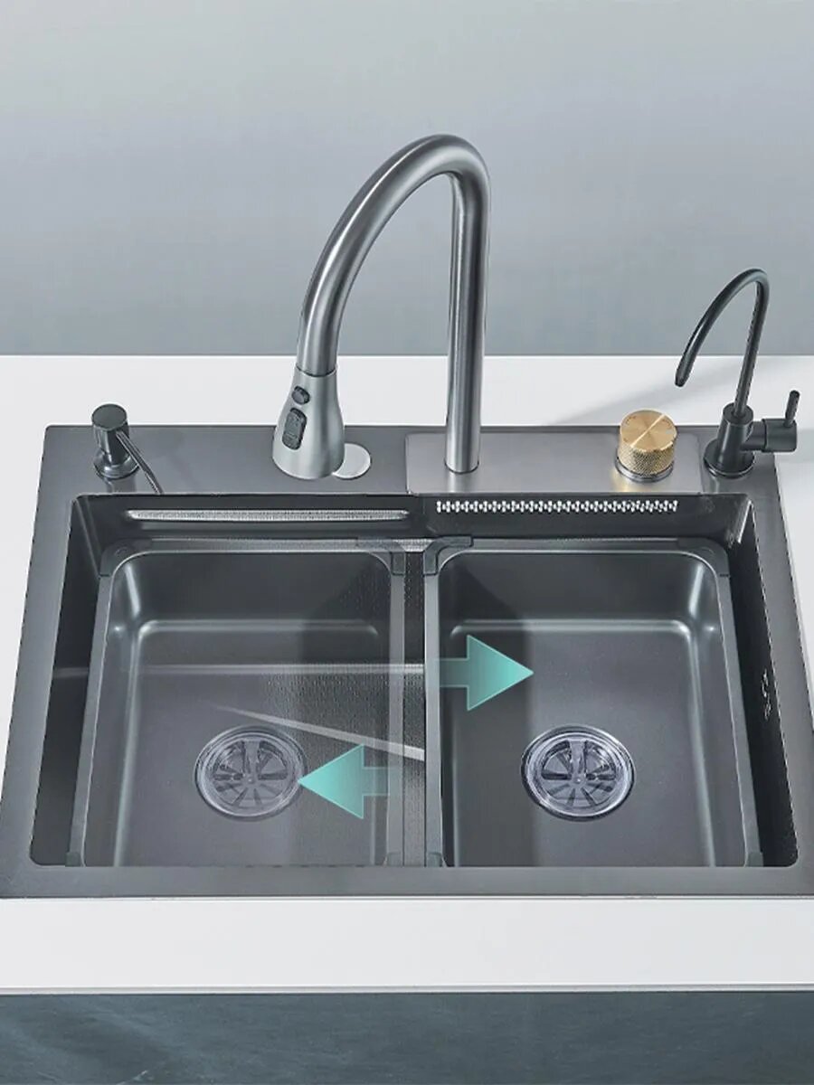 Раковина для кухни с водопадом многофункциональная 68*45