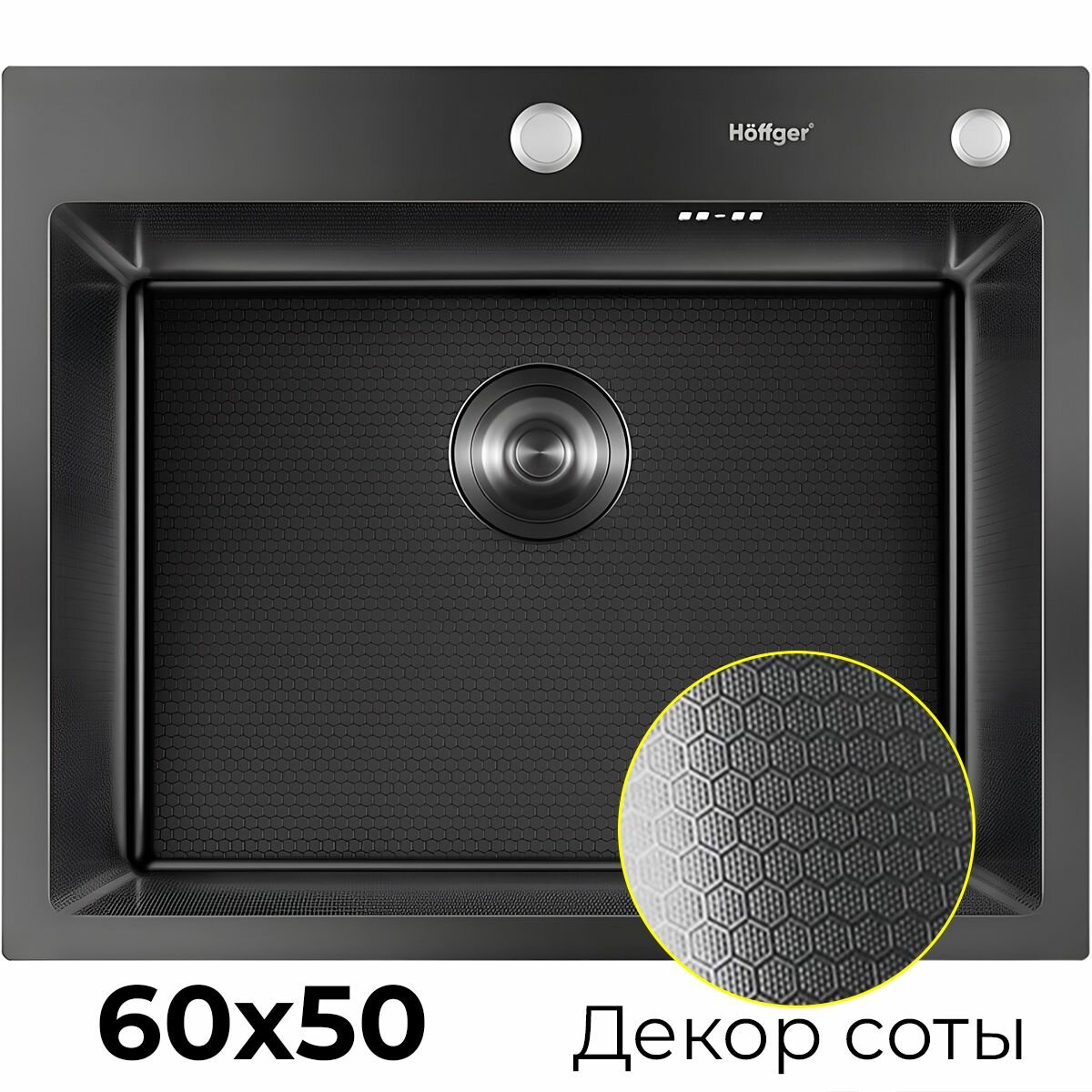 Мойка для кухни Hoffger 6050T Black (Графит), 60x50, нержавеющая сталь PVD покрытие, декор соты, врезной монтаж