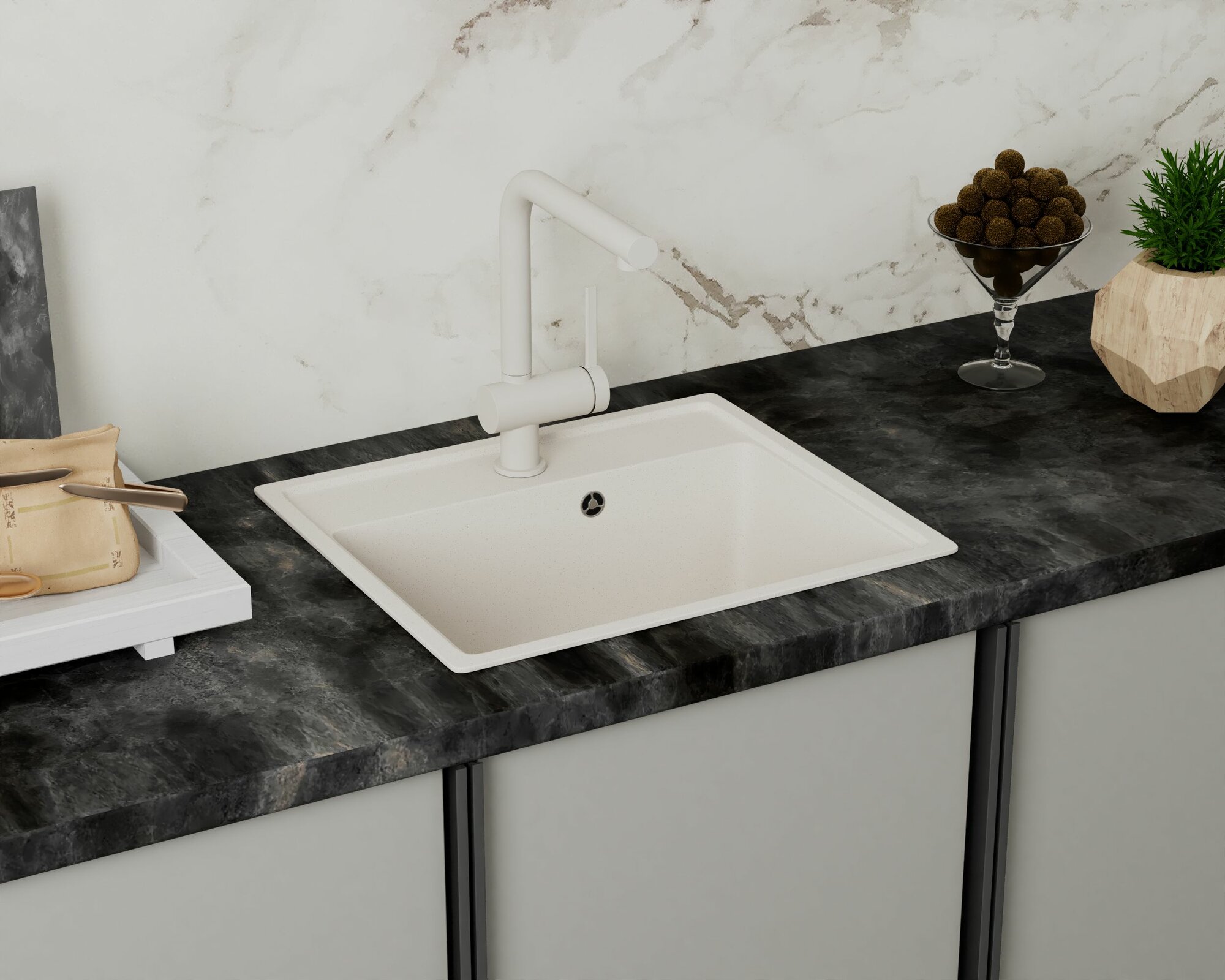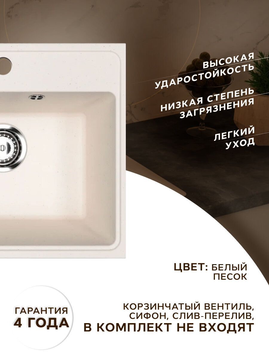 Мойка для кухни BAU Stil Pro 57х50 без выпуска, белый песок