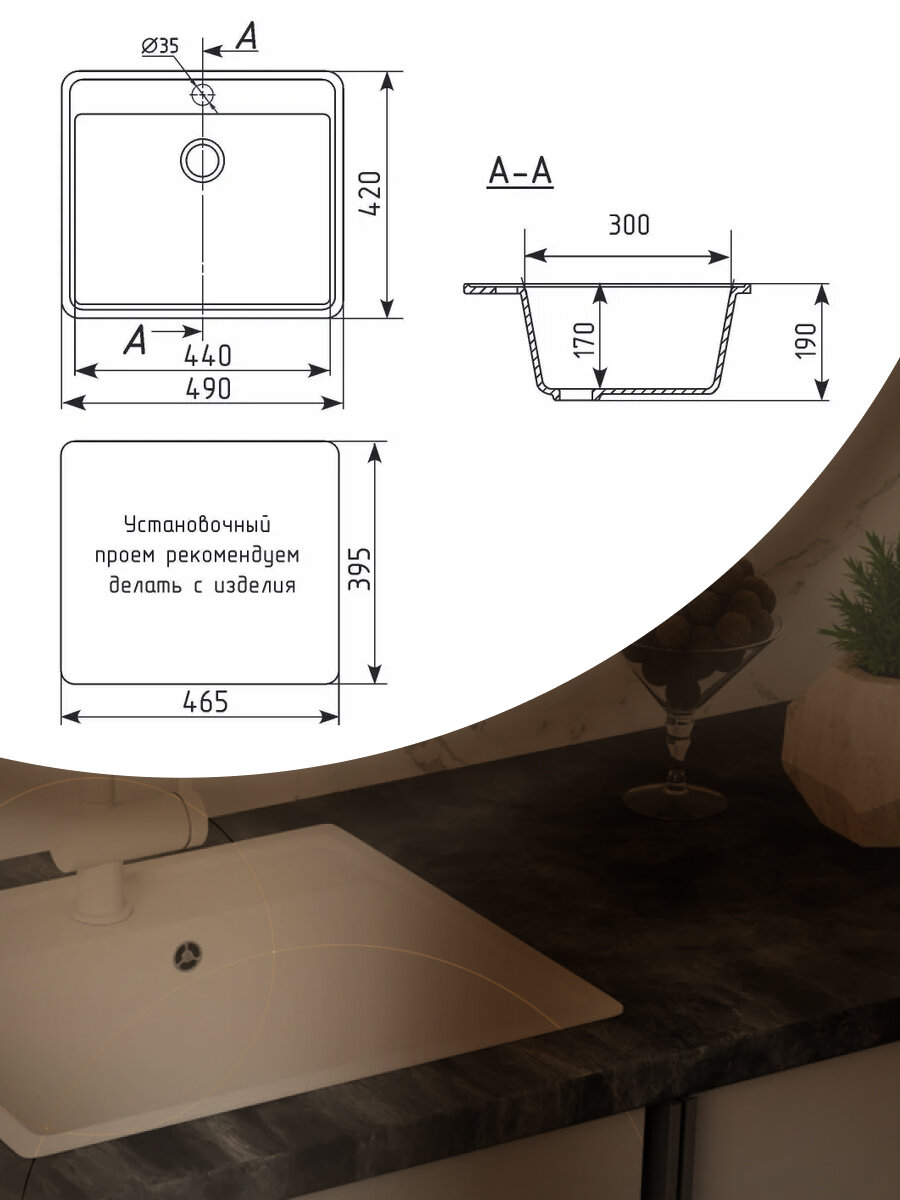 Мойка для кухни "BAU Stil Pro" 49*42, без выпуска интересное: