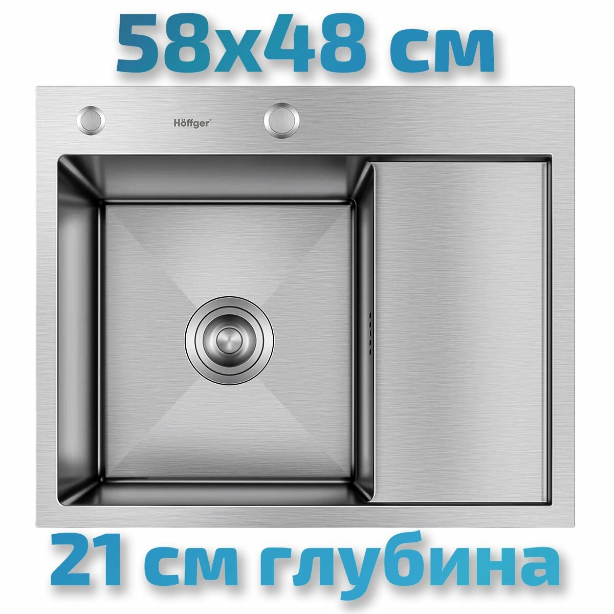 Мойка для кухни Hoffger 5848R Satin (Сталь сатин), правая чаша, 58x48, нержавеющая сталь, врезной монтаж