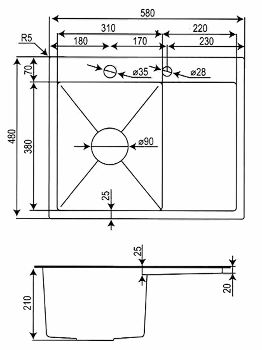 Врезная кухонная мойка LEX Maury 510
