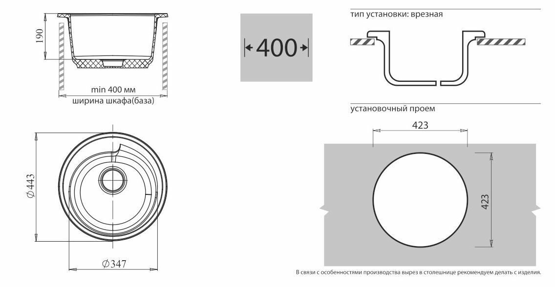 Мойка SANTREK AQUA ROUND SA-R450 D443 мм, круглая (черный-308) (без сифона) интересное: