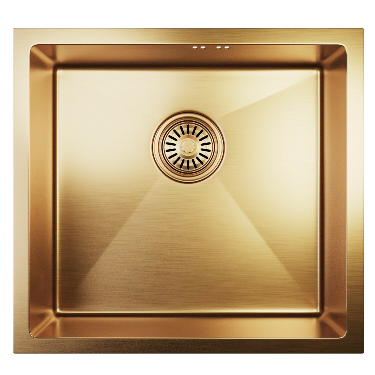 Мойка кухонная 45х42 см, нержавеющая сталь 3мм, PVD-покрытие, цвет золото , сифон в комплекте