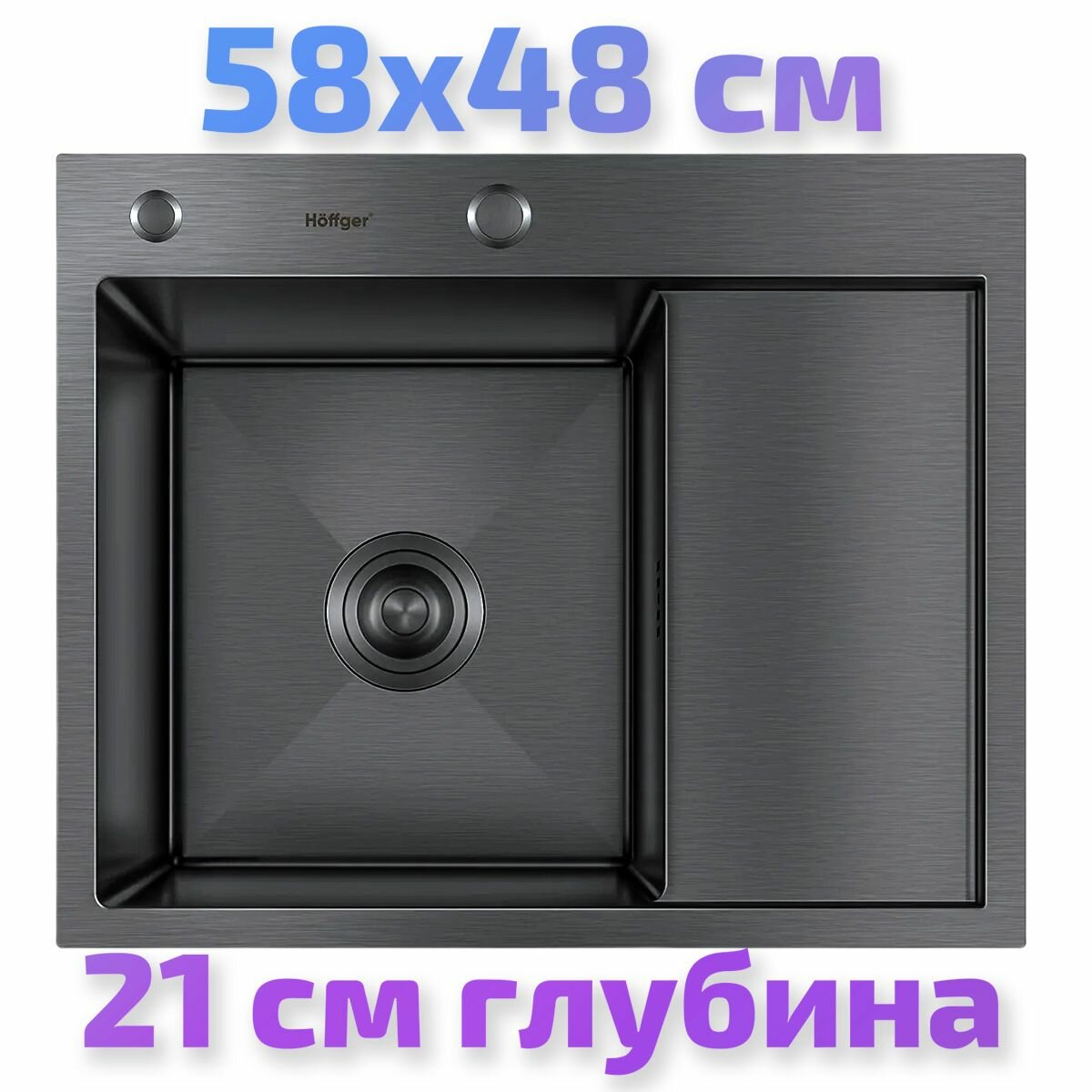 Мойка для кухни Hoffger 5848L Black (Графит), левая чаша, 58x48, нержавеющая сталь с PVD покрытием, врезной монтаж интересное: