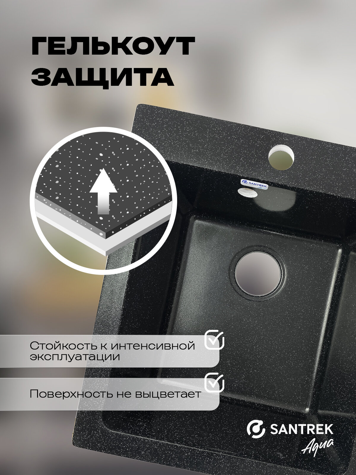 Мойка SANTREK AQUA BOXY SA-B505 1 чаша 427*505 мм (черный-308) (без сифона) интересное: