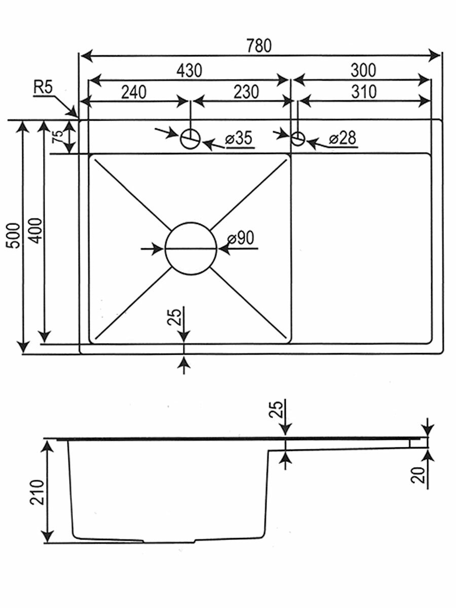 Врезная кухонная мойка LEX Maury 510