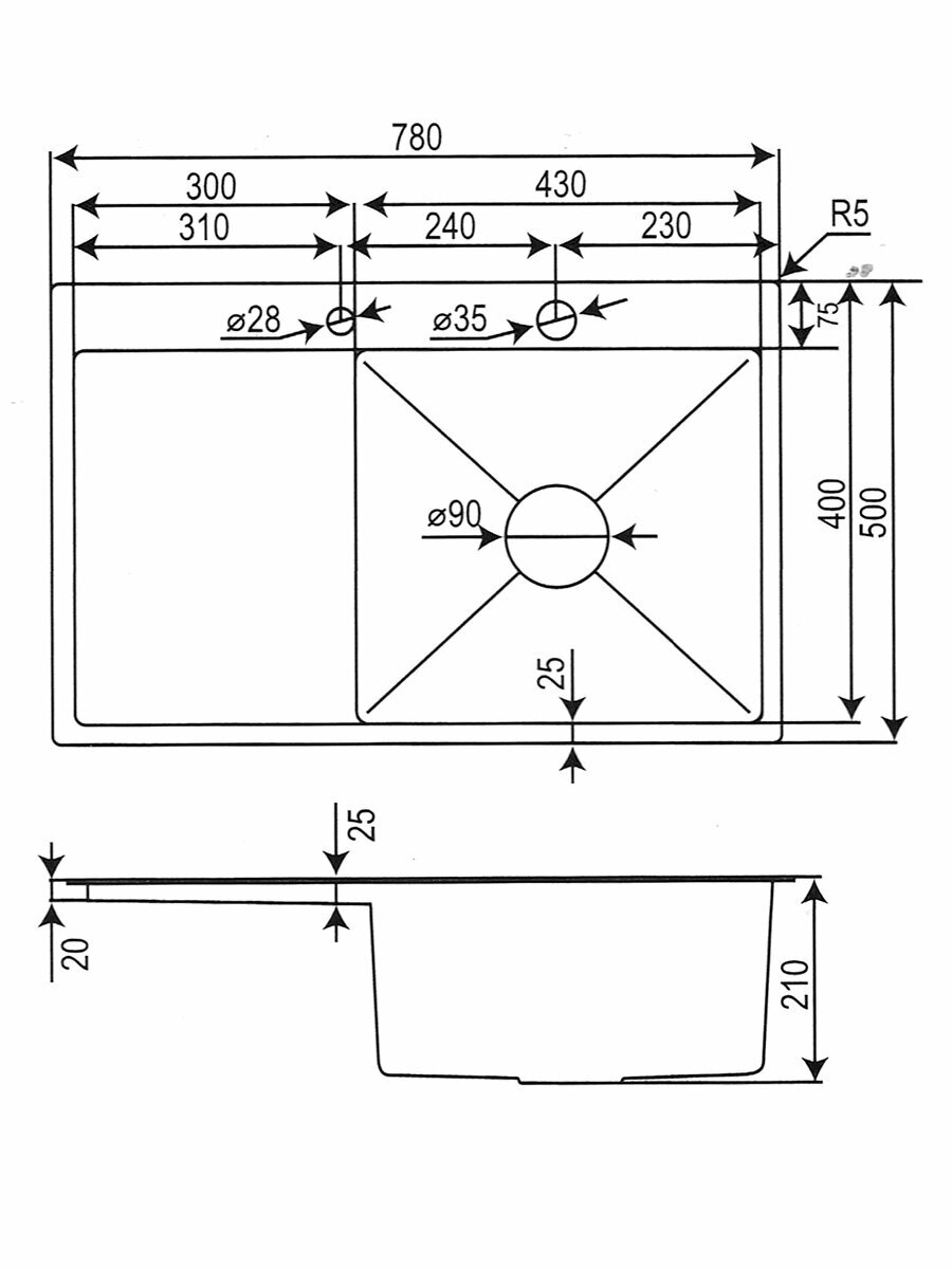 Мойка для кухни Hoffger 7850R Satin (Сталь сатин), правая чаша, 78x50, нержавеющая сталь, врезной монтаж интересное: