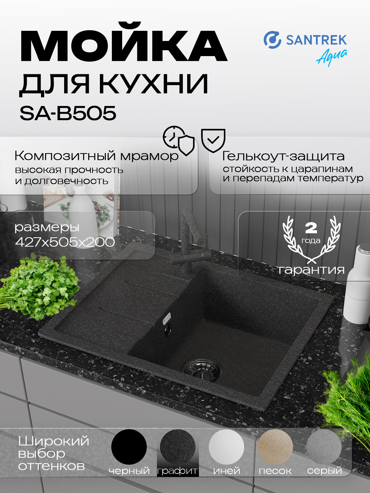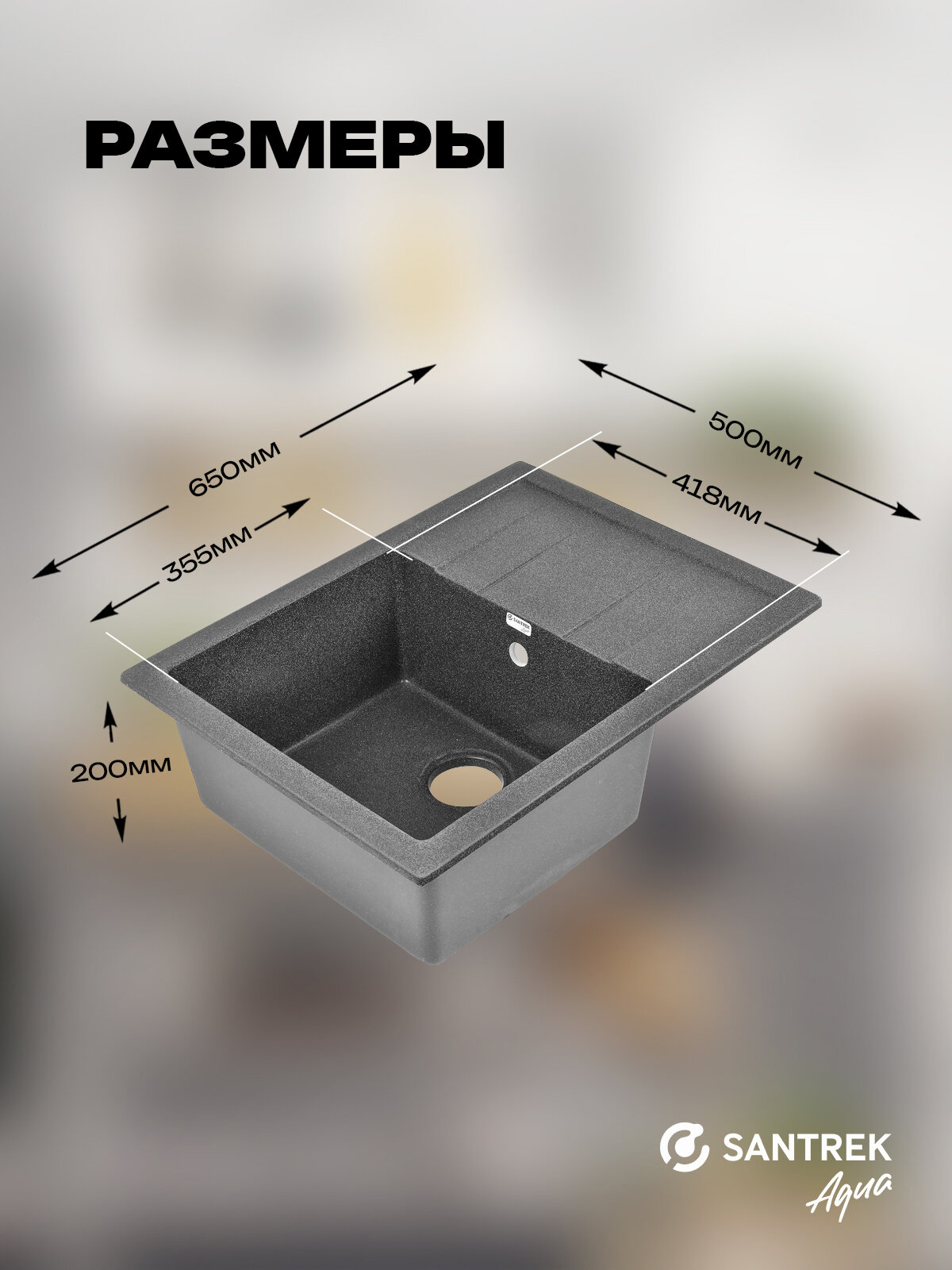 Мойка SANTREK AQUA SQUARE SA-S650L чаша + крыло 650*500 мм (графит-309) (без сифона) интересное: