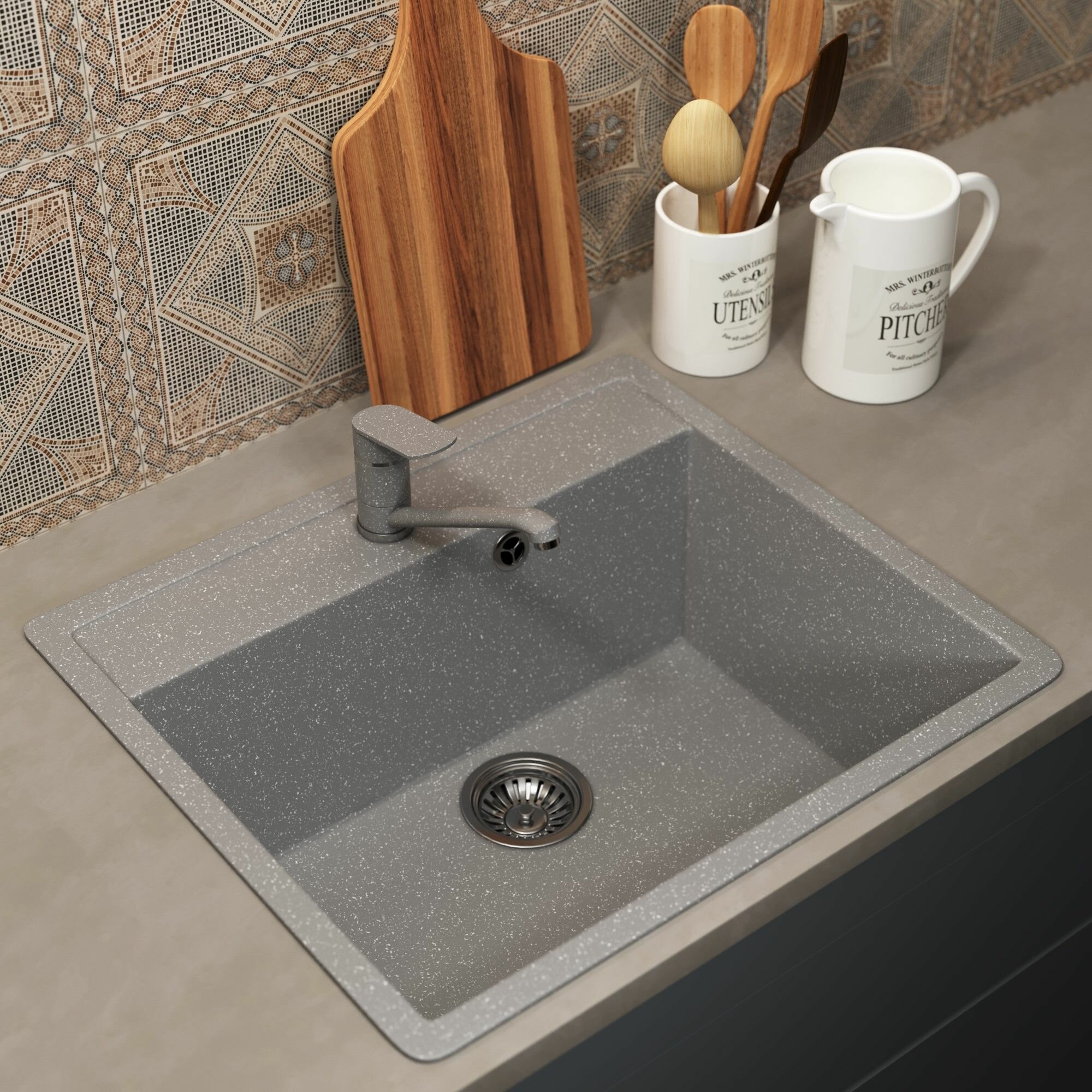 Кухонная мойка из искусственного камня Uperwood ECON UPD-104-003, прямоугольная, серая матовая интересное: