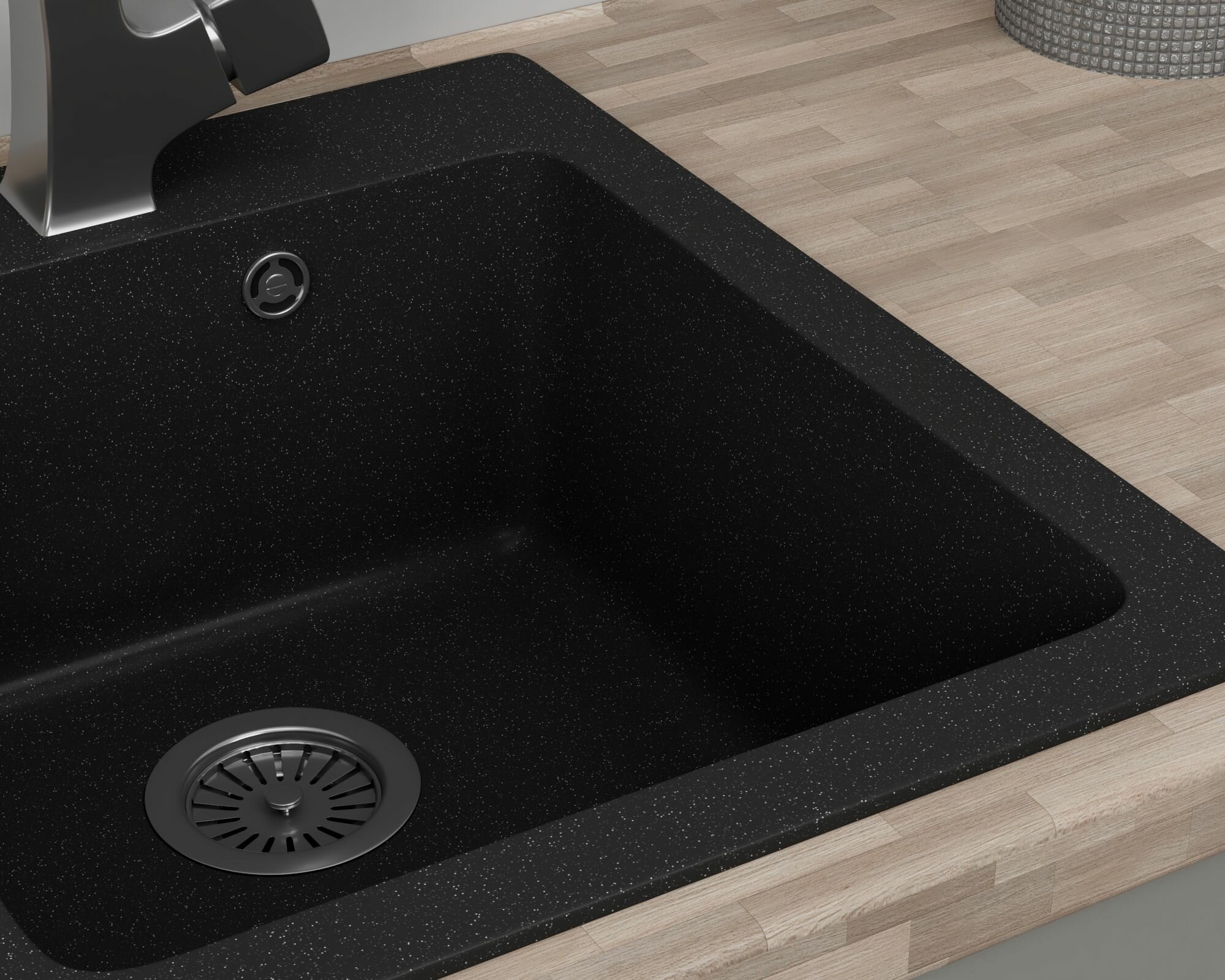 Мойка для кухни BAU Stil Black stone 56х50, выпуск с сифоном в комплекте, черный камень