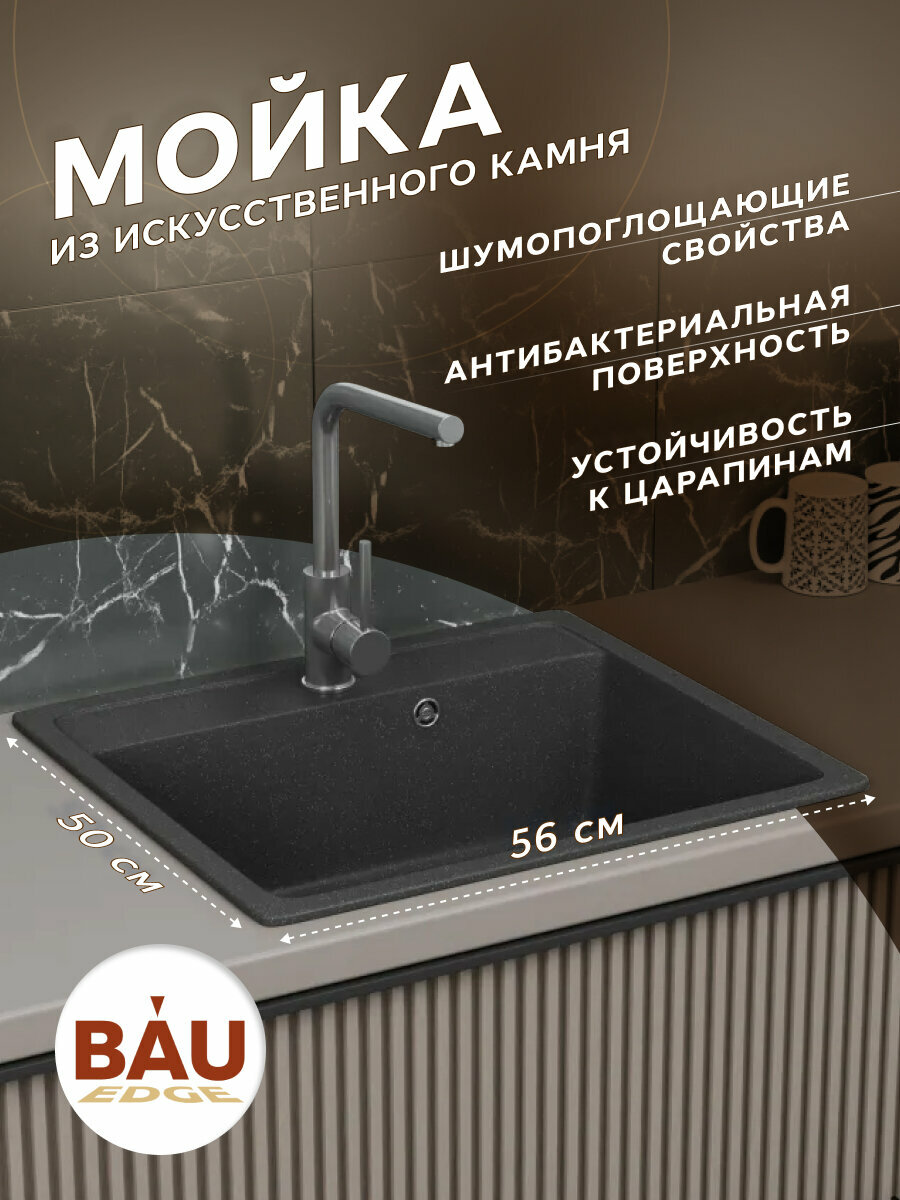 СохранитьМойка для кухни BAU Stil Black stone 56х50, выпуск с сифоном в комплекте, черный камень интересное: