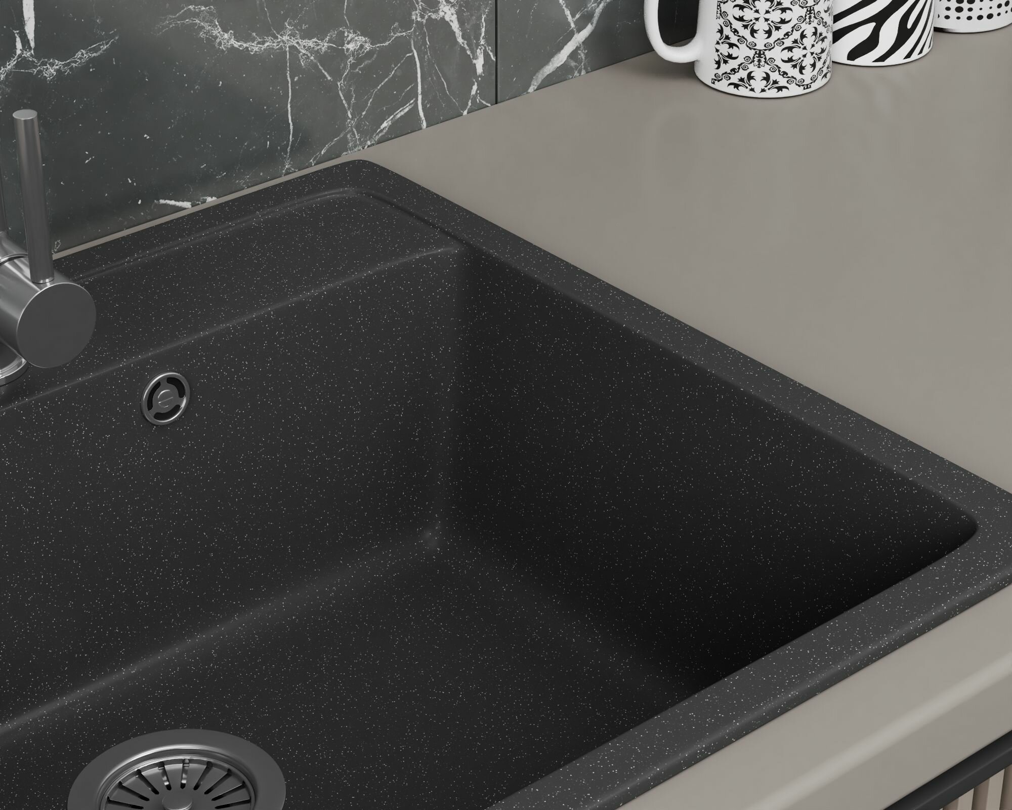 Мойка для кухни BAU Stil Black stone 76х51, выпуск с сифоном в комплекте, черный камень
