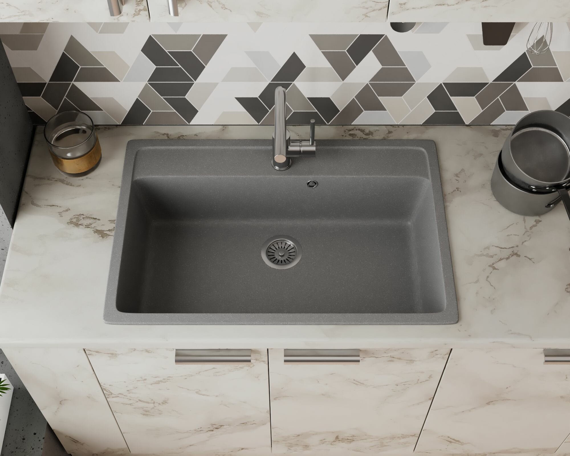 Купить Мойка для кухни BAU Stil Gray stone 76х51, выпуск с сифоном в комплекте, серый камень