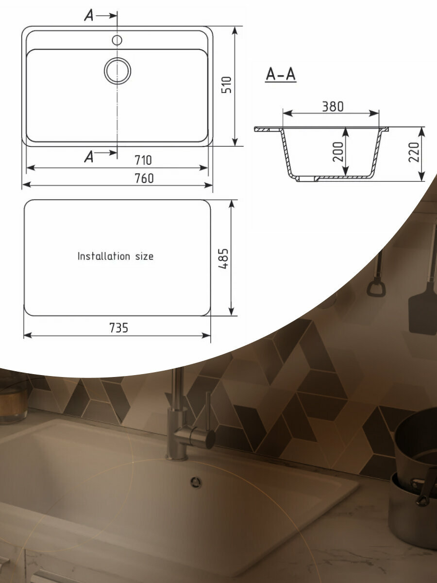СохранитьМойка для кухни BAU Stil White snow 76х51, выпуск с сифоном в комплекте, белый снег интересное: