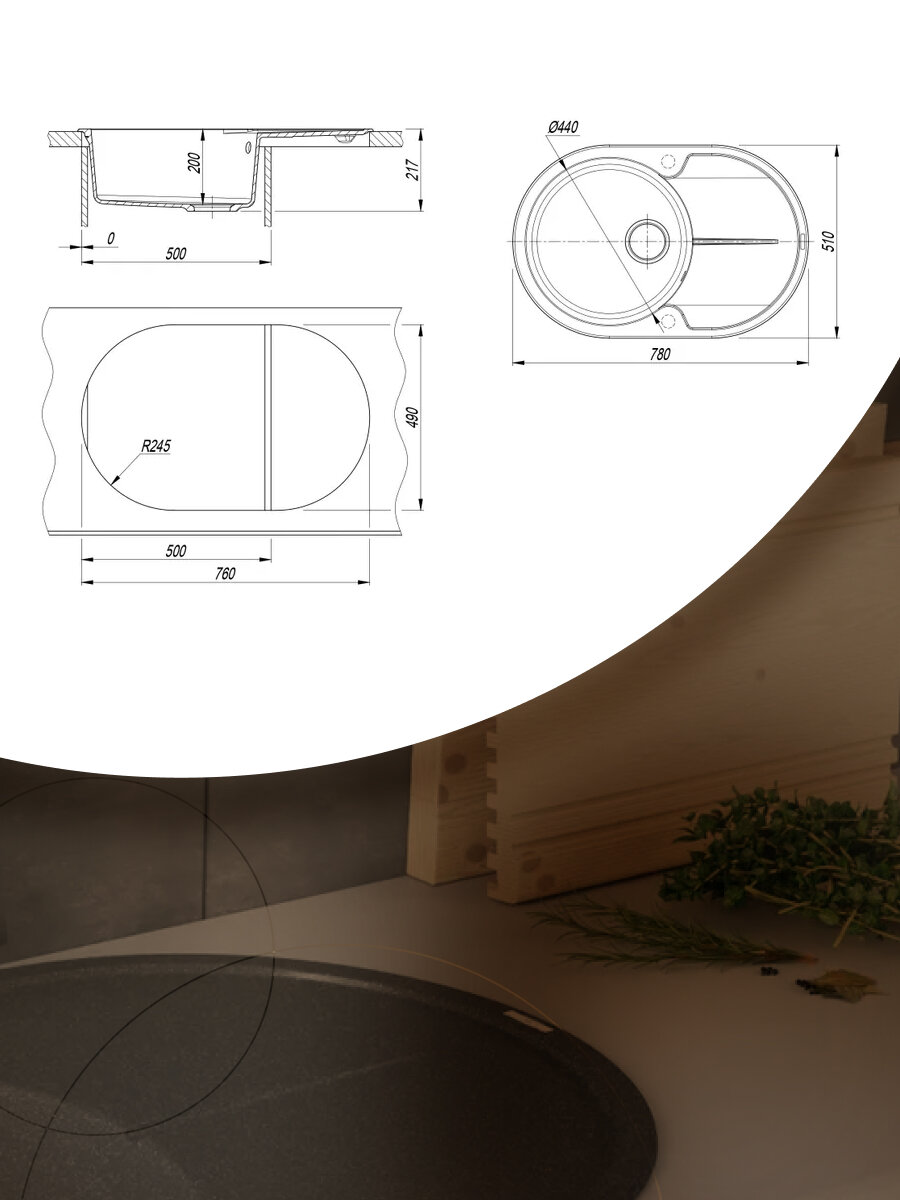 СохранитьМойка для кухни врезная кварцевая в комплекте с сифоном BAU Dream Black 78х51, черный интересное: