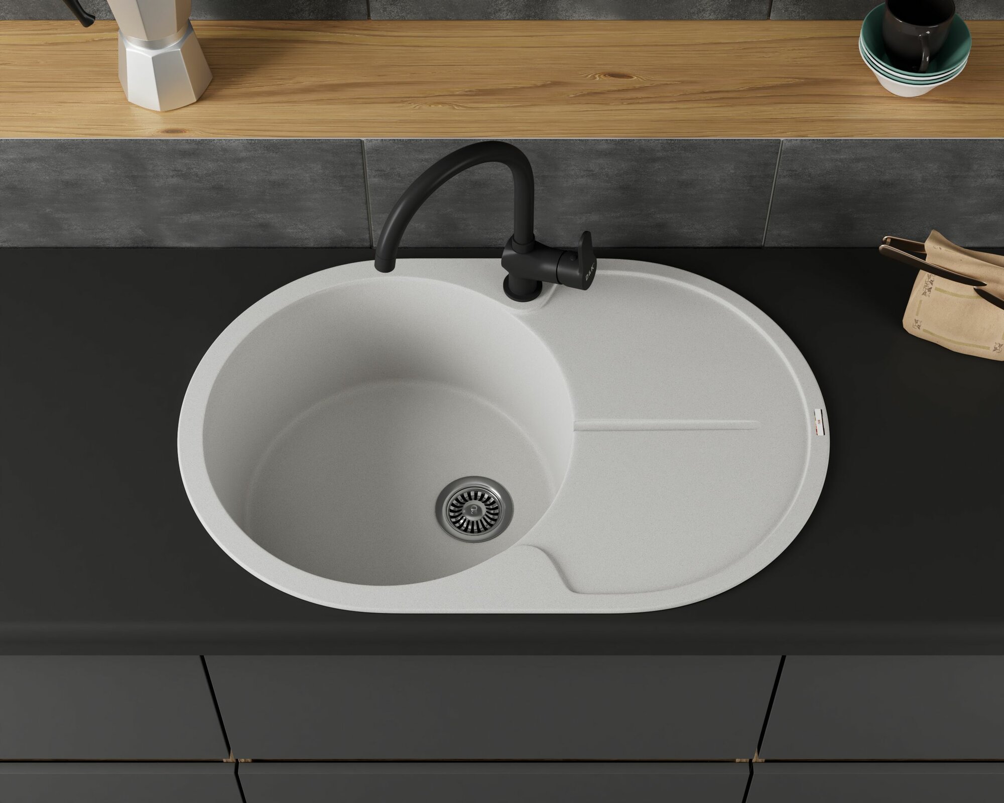 Мойка для кухни врезная кварцевая в комплекте с сифоном BAU Dream Anthracite 51, антрацит