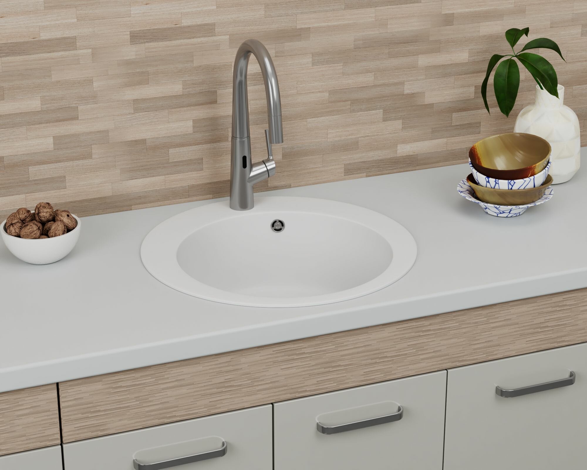 СохранитьМойка для кухни BAU Dream White snow D 50, выпуск с сифоном в комплекте, белый снег интересное: