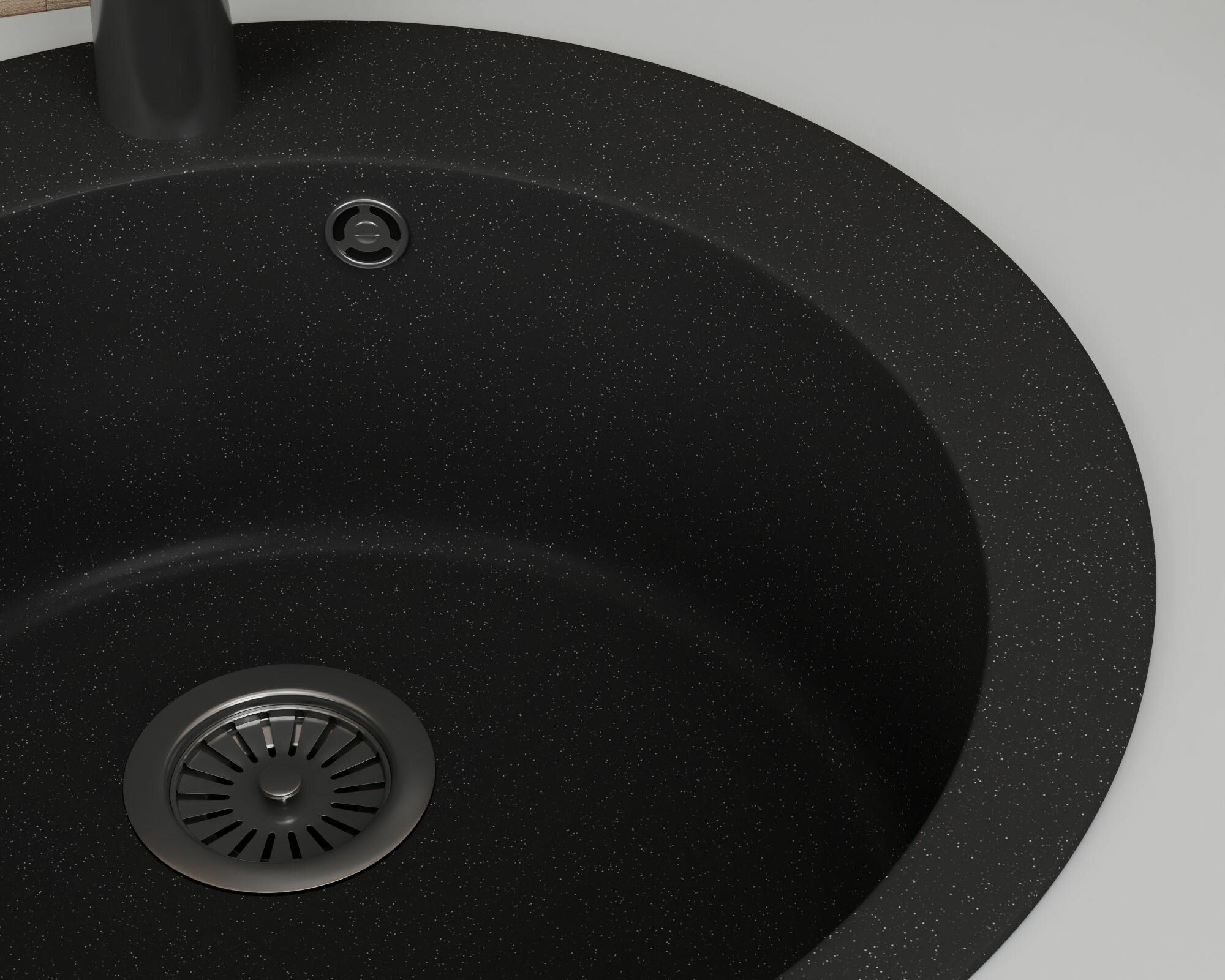 Мойка для кухни BAU Dream Black stone D 51, выпуск с сифоном в комплекте, черный камень