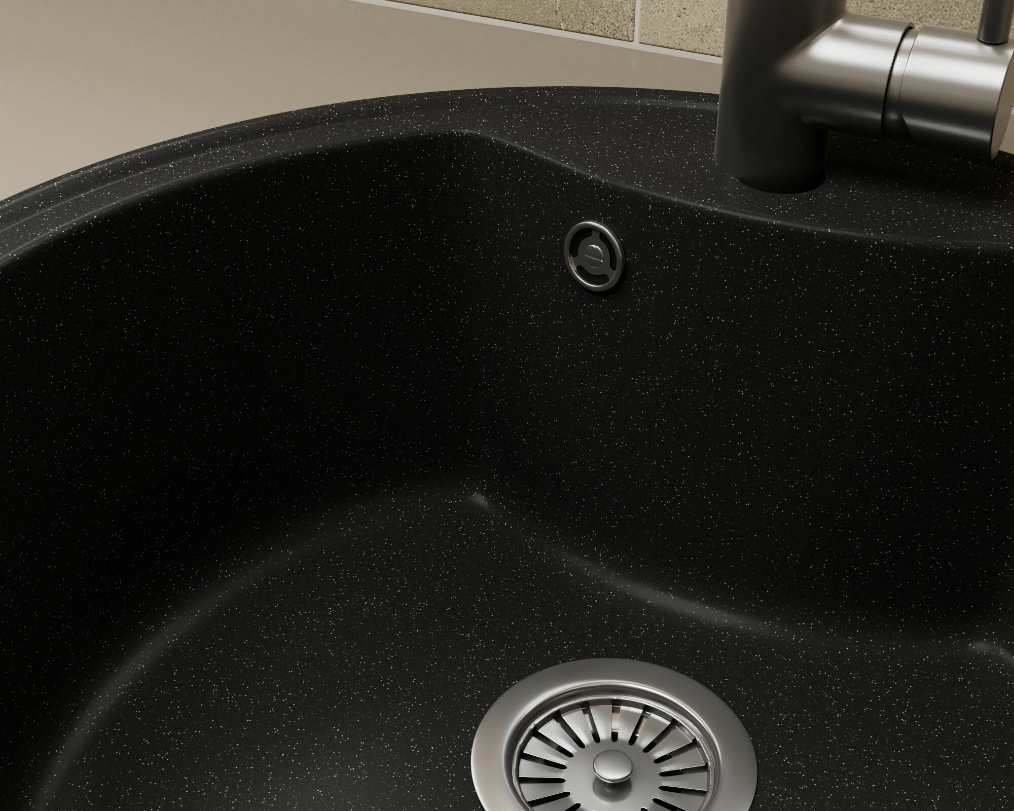 Мойка для кухни BAU Dream Black stone D 44, выпуск с сифоном в комплекте, черный камень