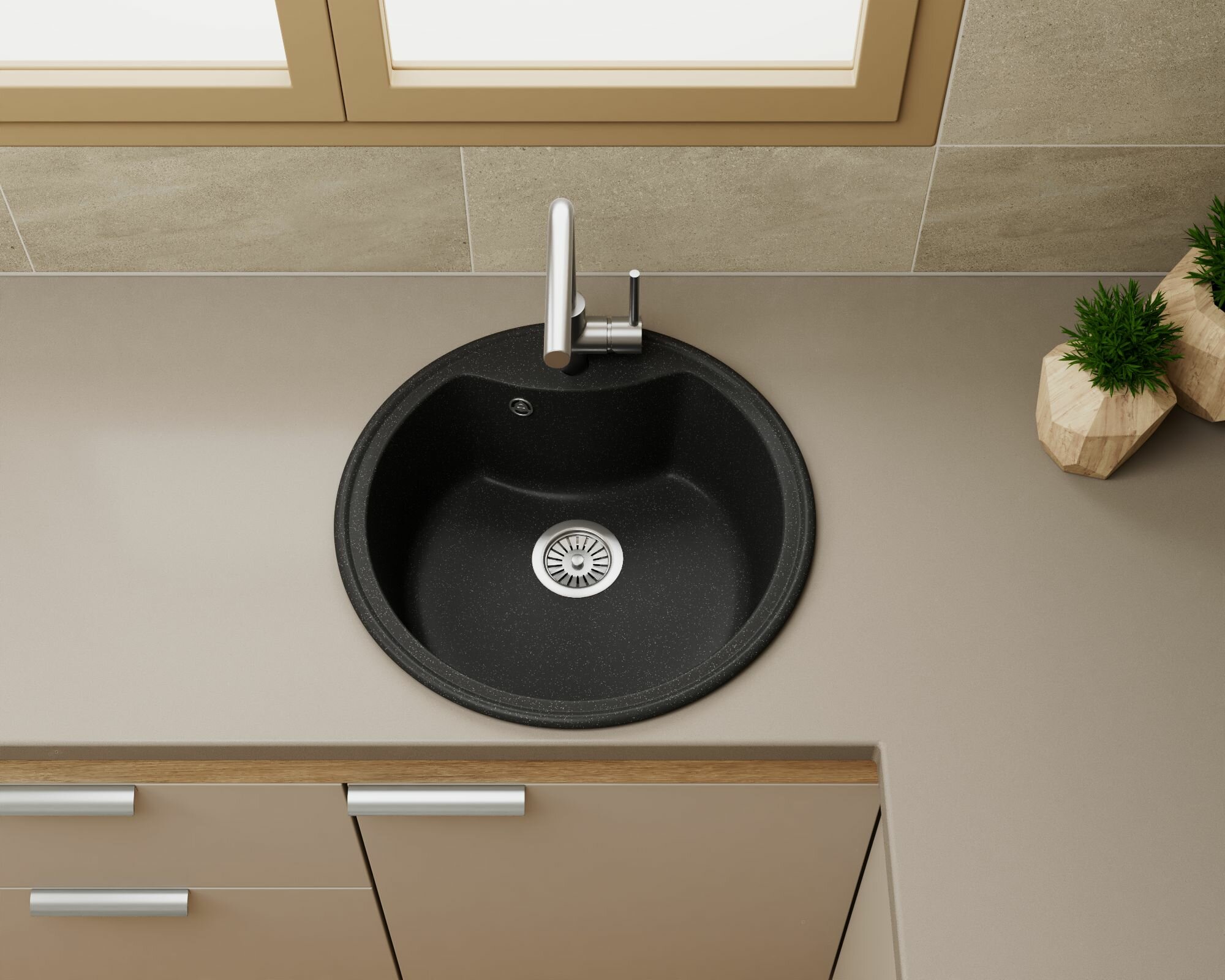 Купить Мойка для кухни BAU Dream Black stone D 51, выпуск с сифоном в комплекте, черный камень
