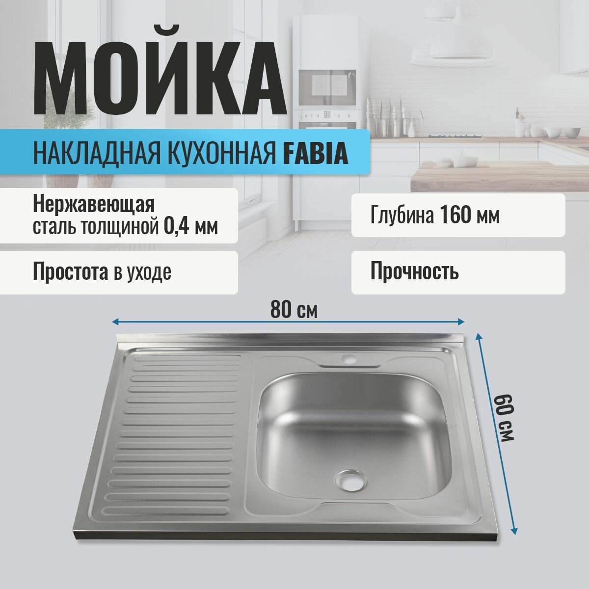 Мойка кухонная FABIA накладная 80х60 см правая толщина 0,4 мм. интересное:
