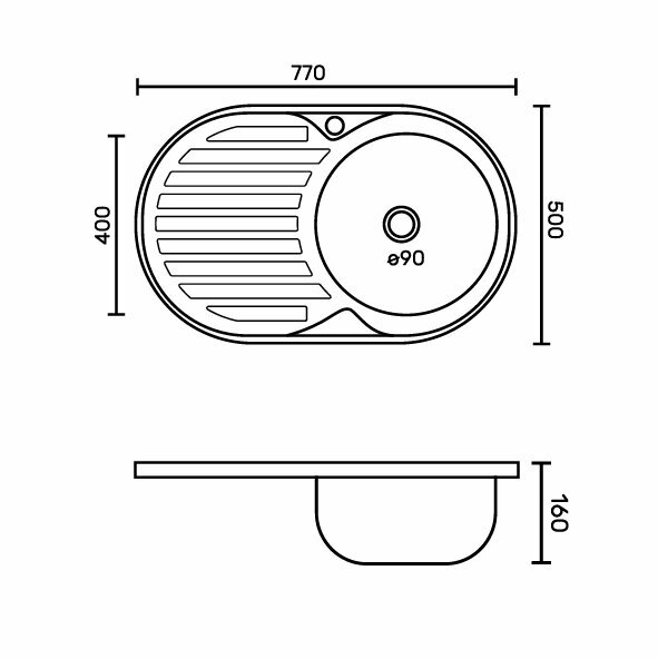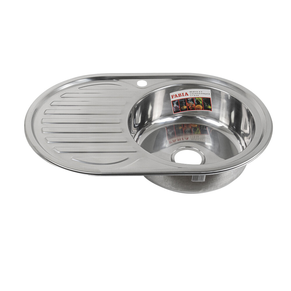 Купить Мойка кухонная FABIA врезная, 77х50, глубина 180 мм, большой сифон с переливом