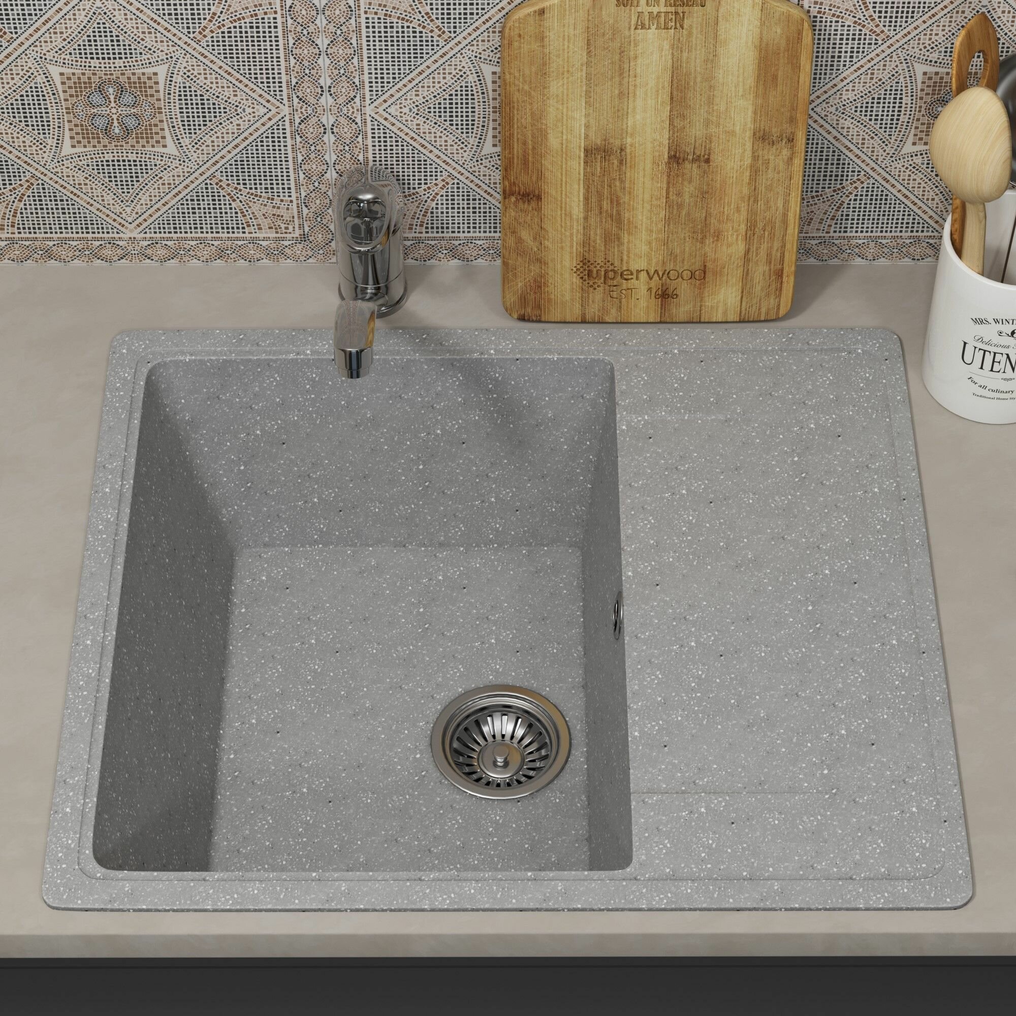 Кухонная мойка из искусственного камня Uperwood ECON UPD-201-003, прямоугольная, серая матовая интересное: