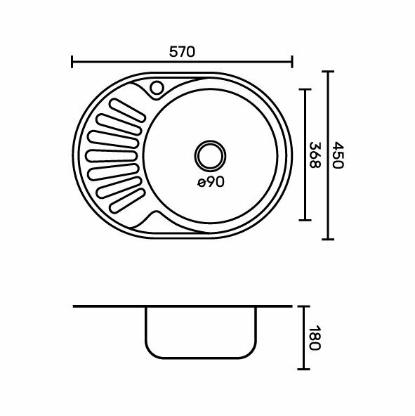 Мойка кухонная FABIA врезная, 57х45, глубина 180 мм, большой сифон с переливом интересное: