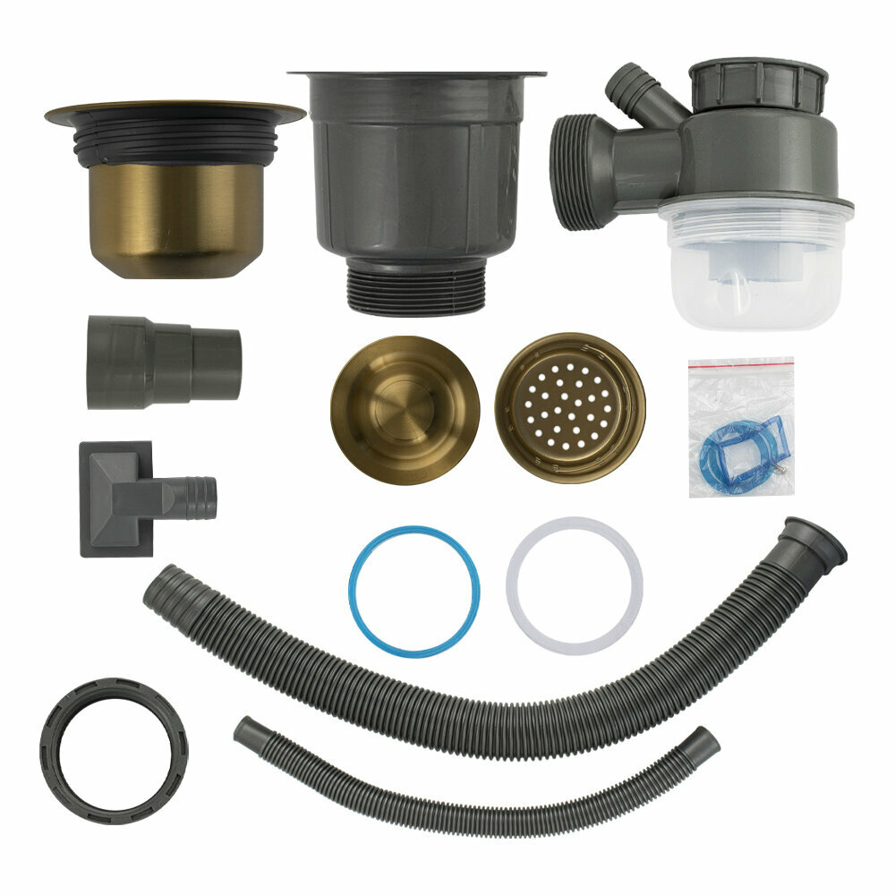 Мойка FABIA 9565 цвет золото врезная 57х45 см левая + большой сифон с переливом