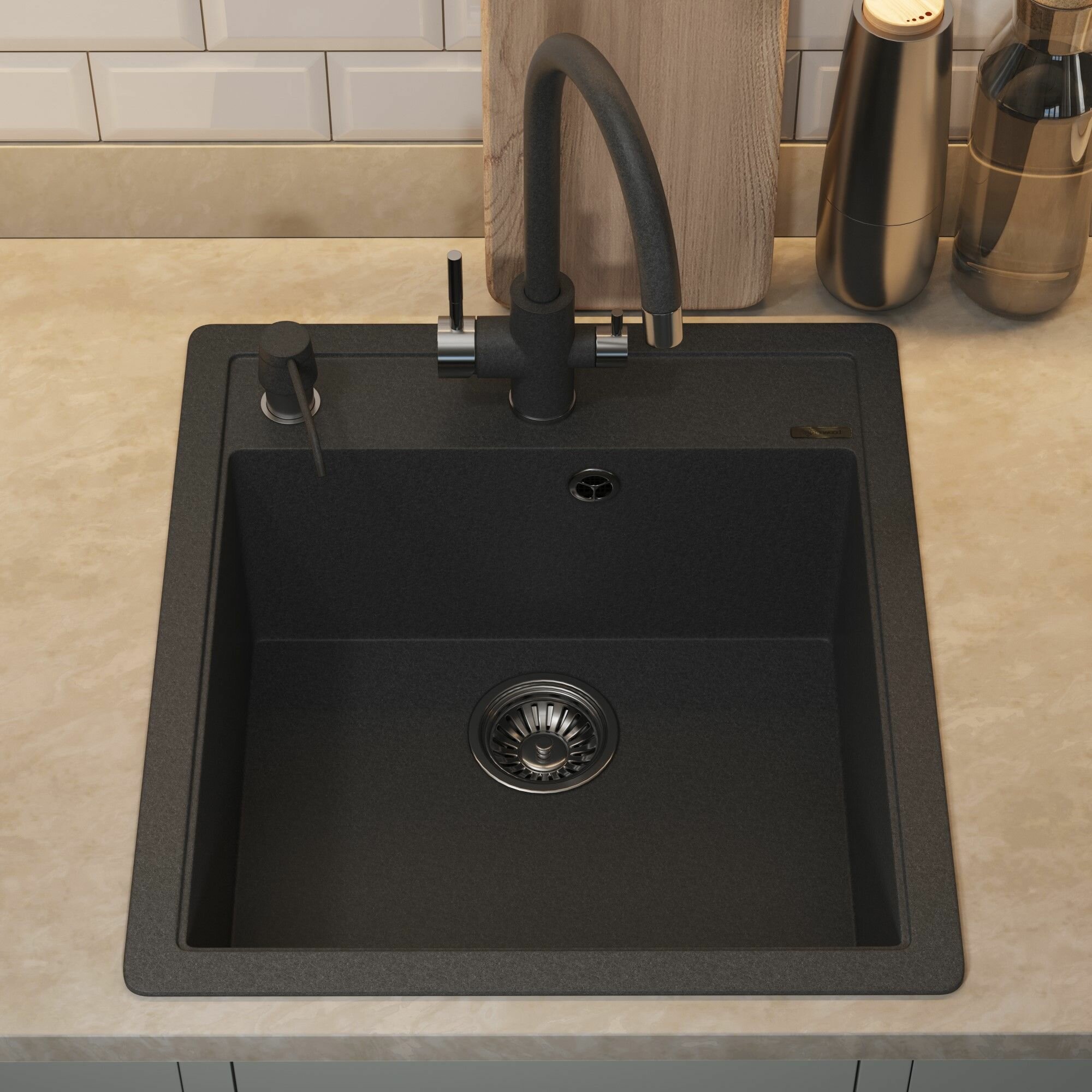 Кухонная мойка кварцевая Uperwood Quartz UPD-07-04, прямоугольная, черная интересное: