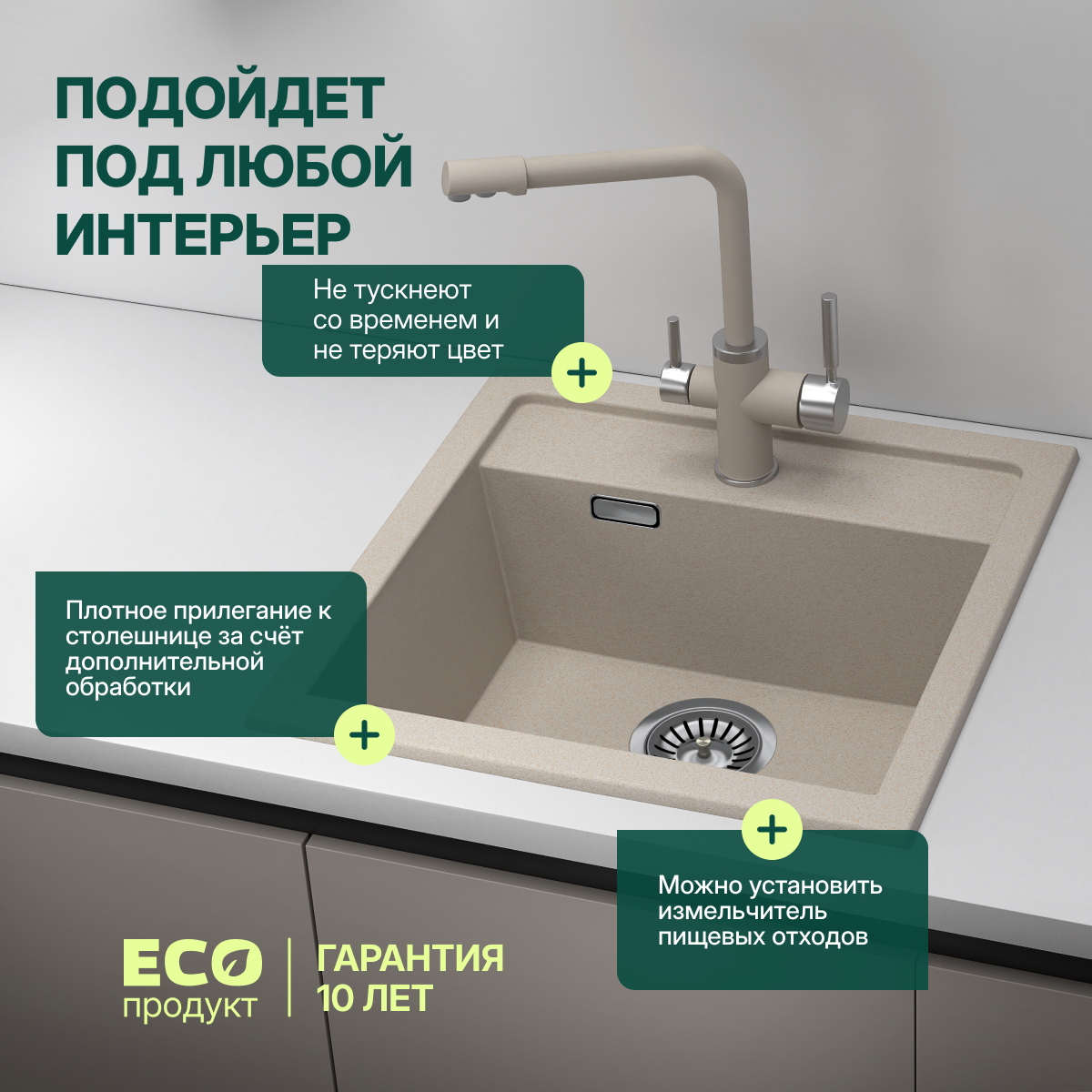 СохранитьВрезная кухонная мойка Comfort 51х50,5 см, квадратная, кварцевая, цвет Пирит, модель 5003 интересное: