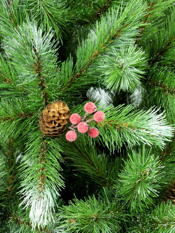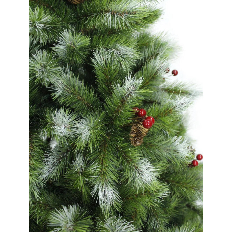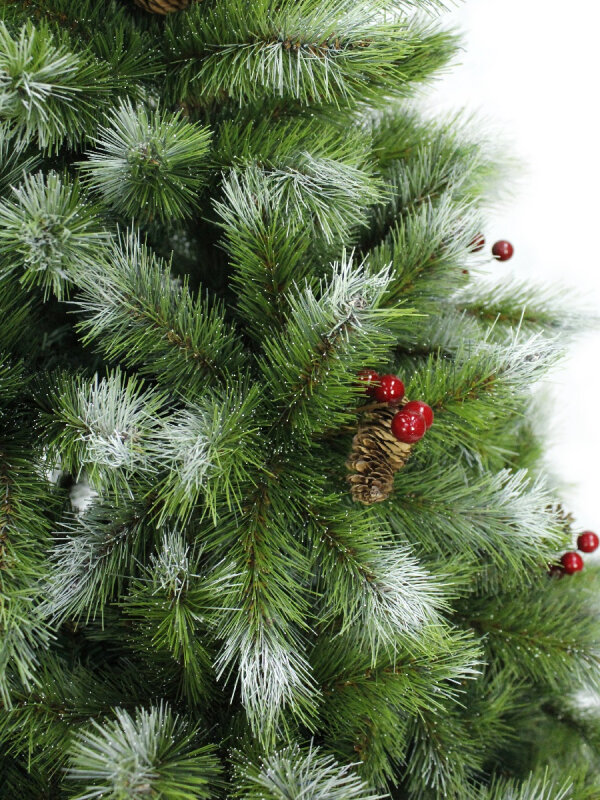 Сосна искусственная "Тиффани заснеженная" (ICE TIFFANY) с шишками и ягодами, зелёная заснеженная, хвоя - леска, 90 см, BEATREES