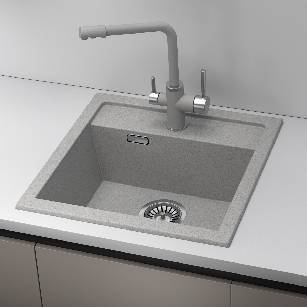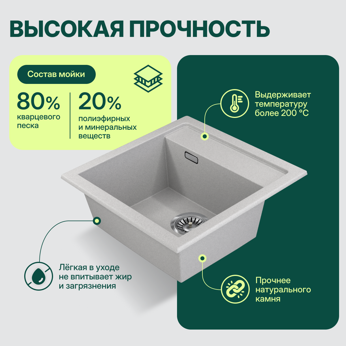 СохранитьВрезная кухонная мойка Comfort 51х50,5 см, квадратная, кварцевая, цвет Базальт, модель 5003 интересное: