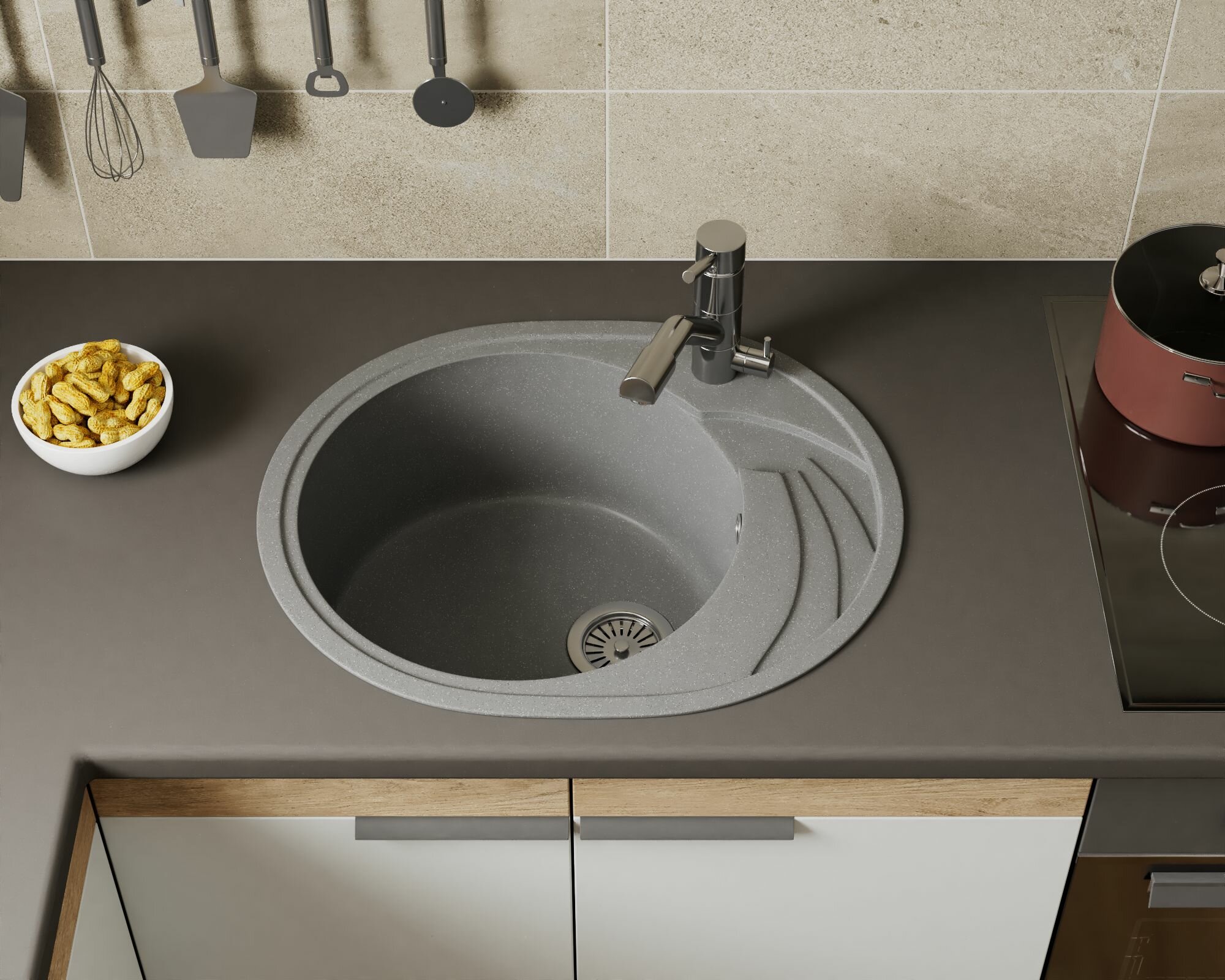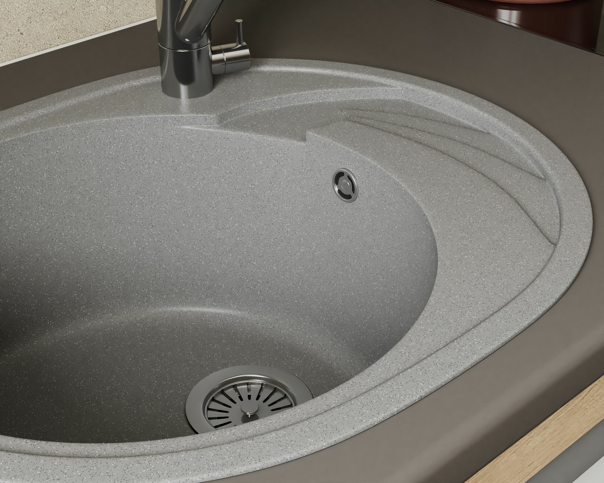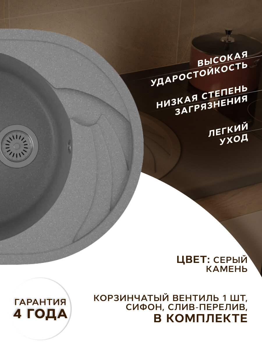 Мойка для кухни оборачиваемая овальная BAU Nimb Gray stone 58х47, выпуск с сифоном в комплекте, серый камень интересное: