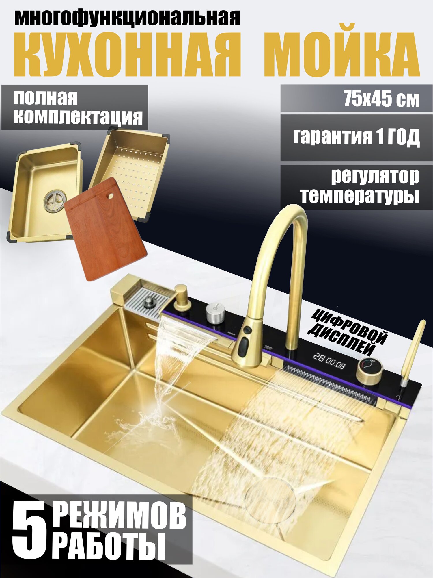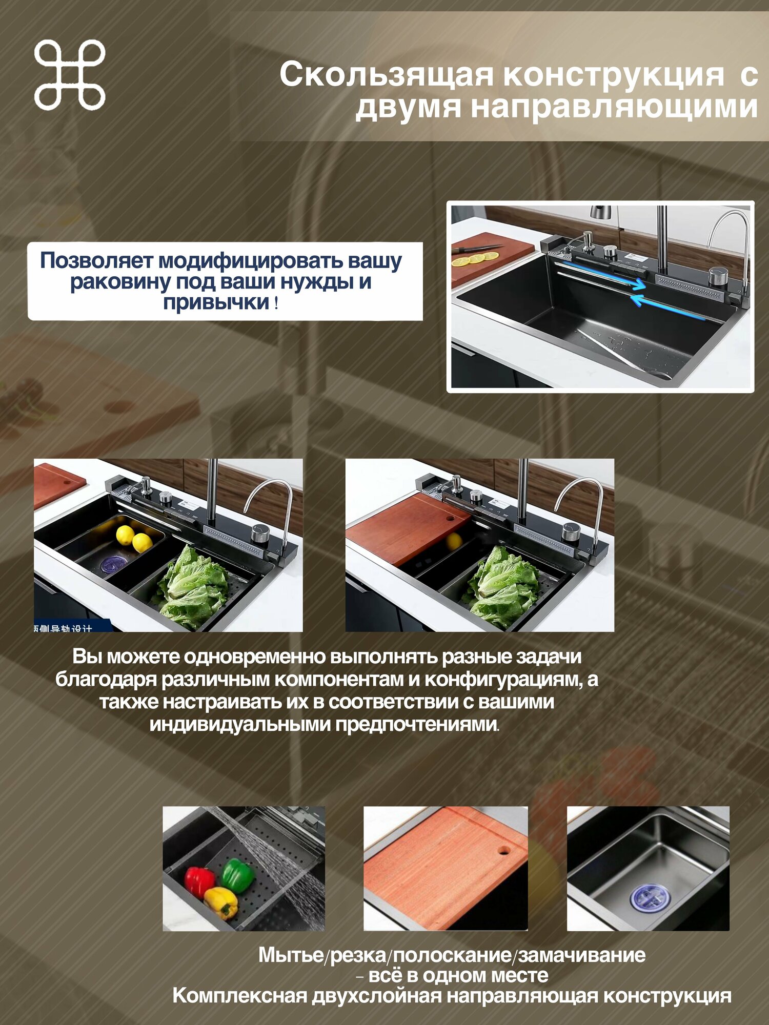 Кухонная мойка с водопадами из нержавеющей стали (смеситель в комплекте) интересное: