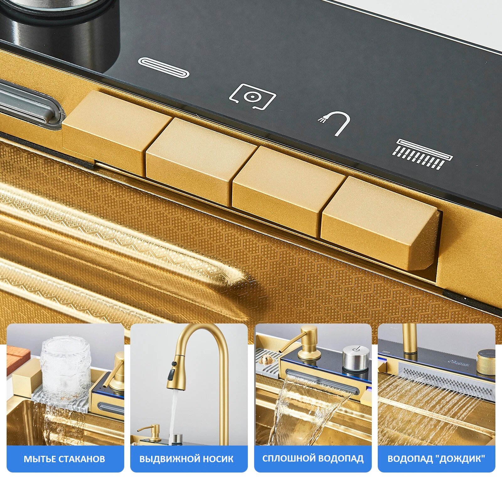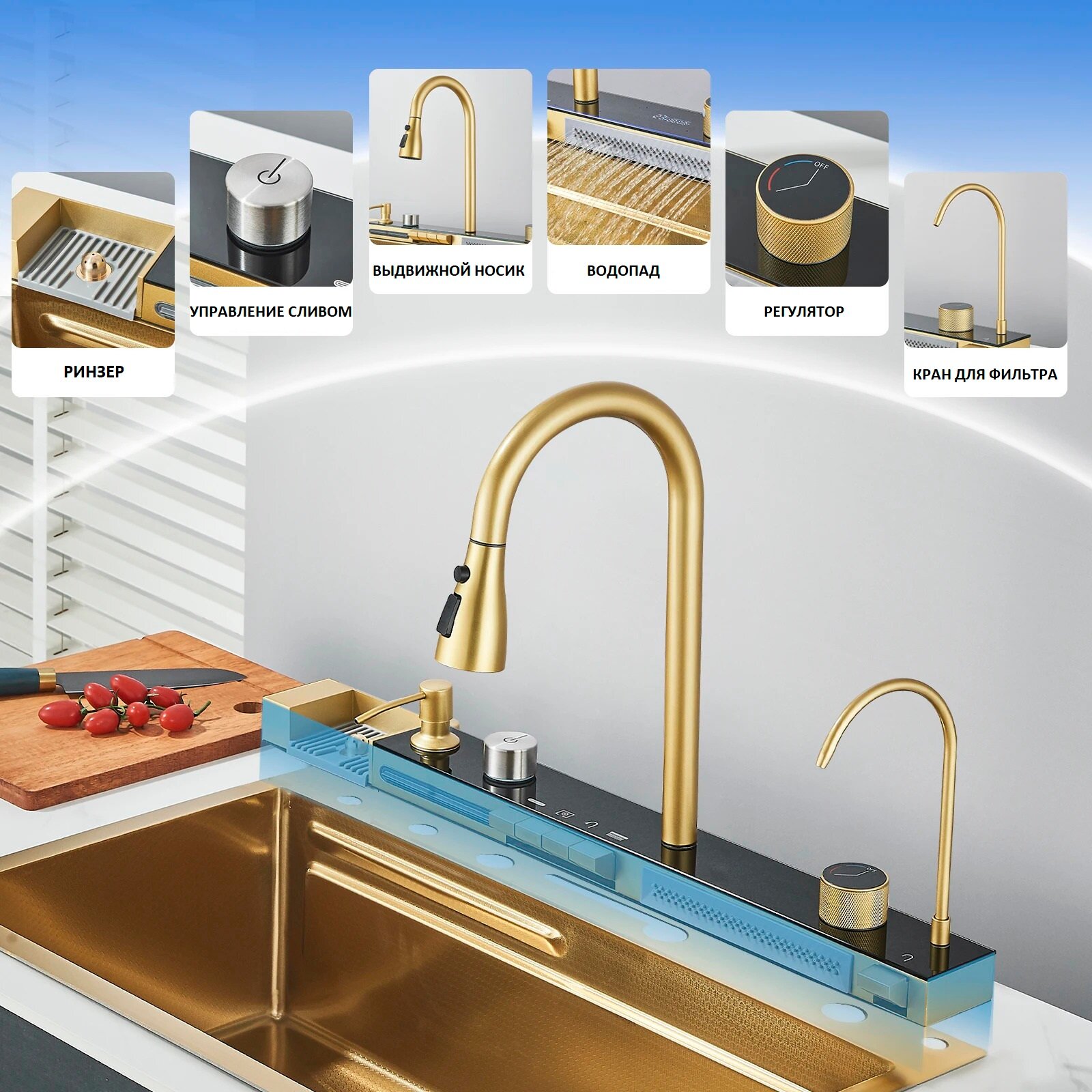 Купить Кухонная мойка с водопадами из нержавеющей стали (смеситель в комплекте)