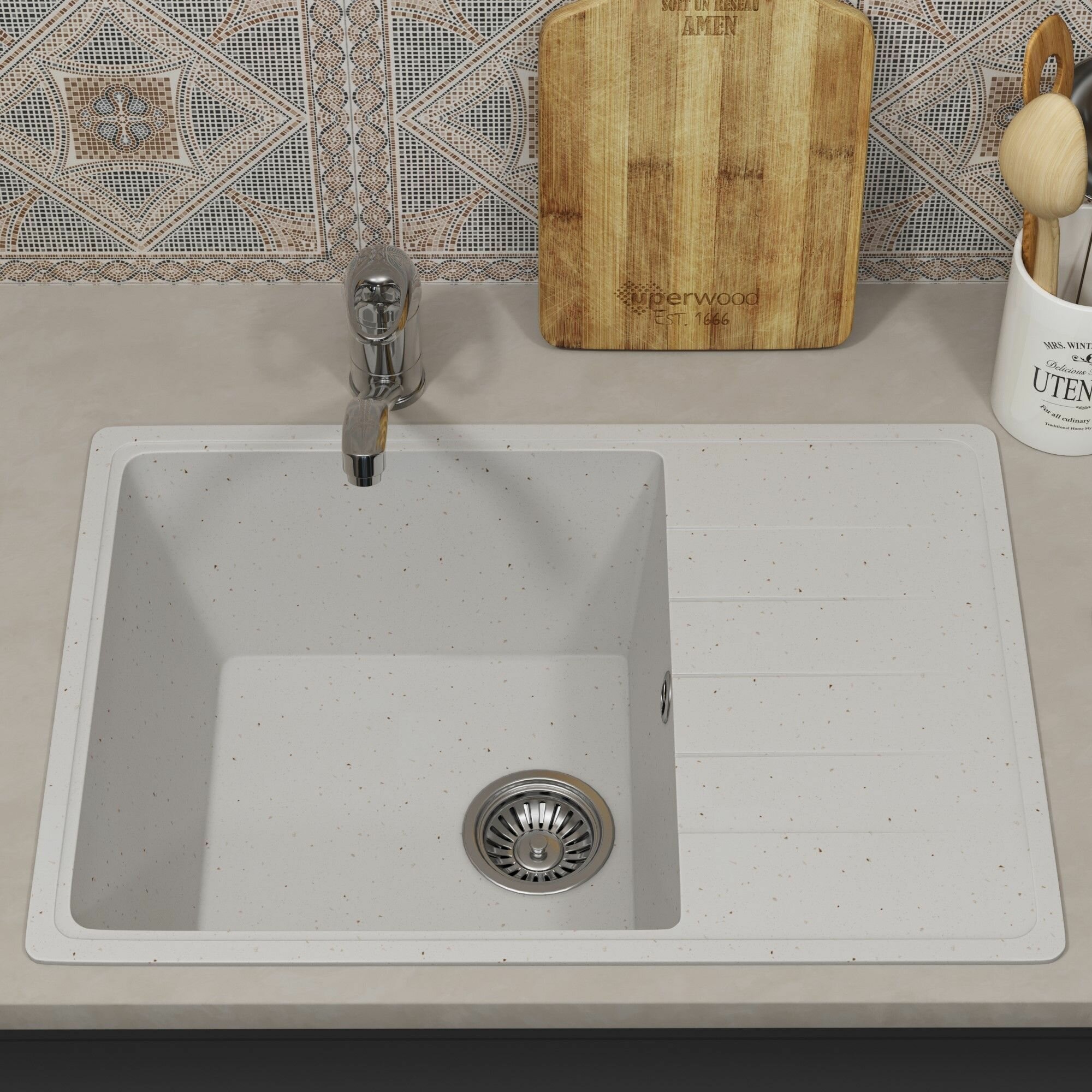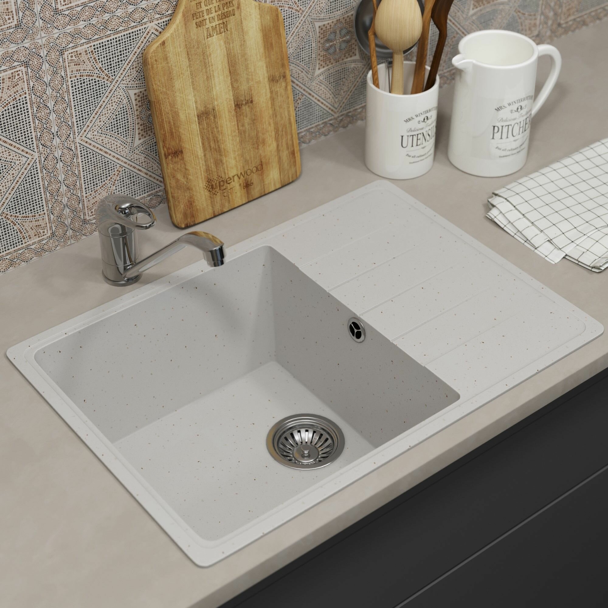 Кухонная мойка из искусственного камня Uperwood ECON UPD-506-001, прямоугольная, белая матовая интересное: