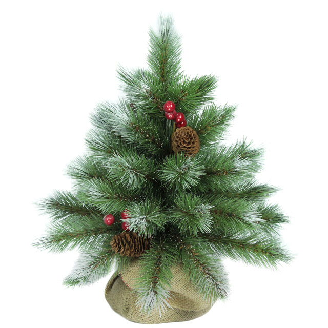 Настольная сосна искусственная АЙС тиффани (ICE TIFFANY) с шишками и ягодами, (хвоя - леска), зелёная заснеженная, 45 см, BEATREES