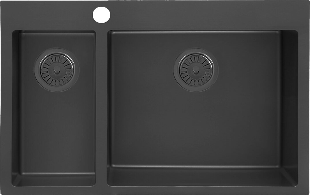 Купить Кухонная мойка Steel Kitchen Style из нержавеющей стали, цвет графит, две чаши, сварная высокопрочная, 78х51 см, малая чаша слева