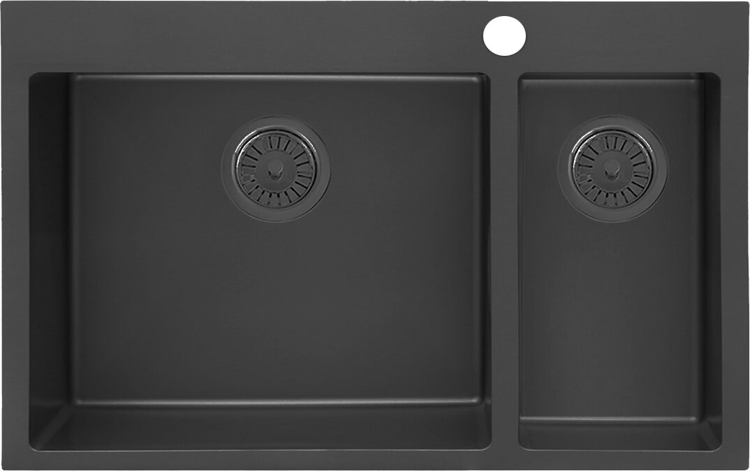 Кухонная мойка Steel Kitchen Style из нержавеющей стали, цвет графит, две чаши, сварная высокопрочная, 78х51 см, малая чаша слева
