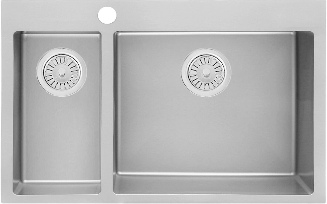 Купить Кухонная мойка Steel Kitchen Style из нержавеющей стали, две чаши, сварная высокопрочная, 78х51 см, малая чаша слева
