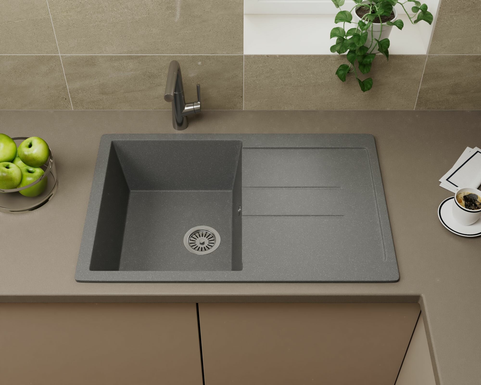 Мойка для кухни оборачиваемая с крылом BAU Stil Gray stone 77х50, выпуск с сифоном в комплекте, серый камень интересное: