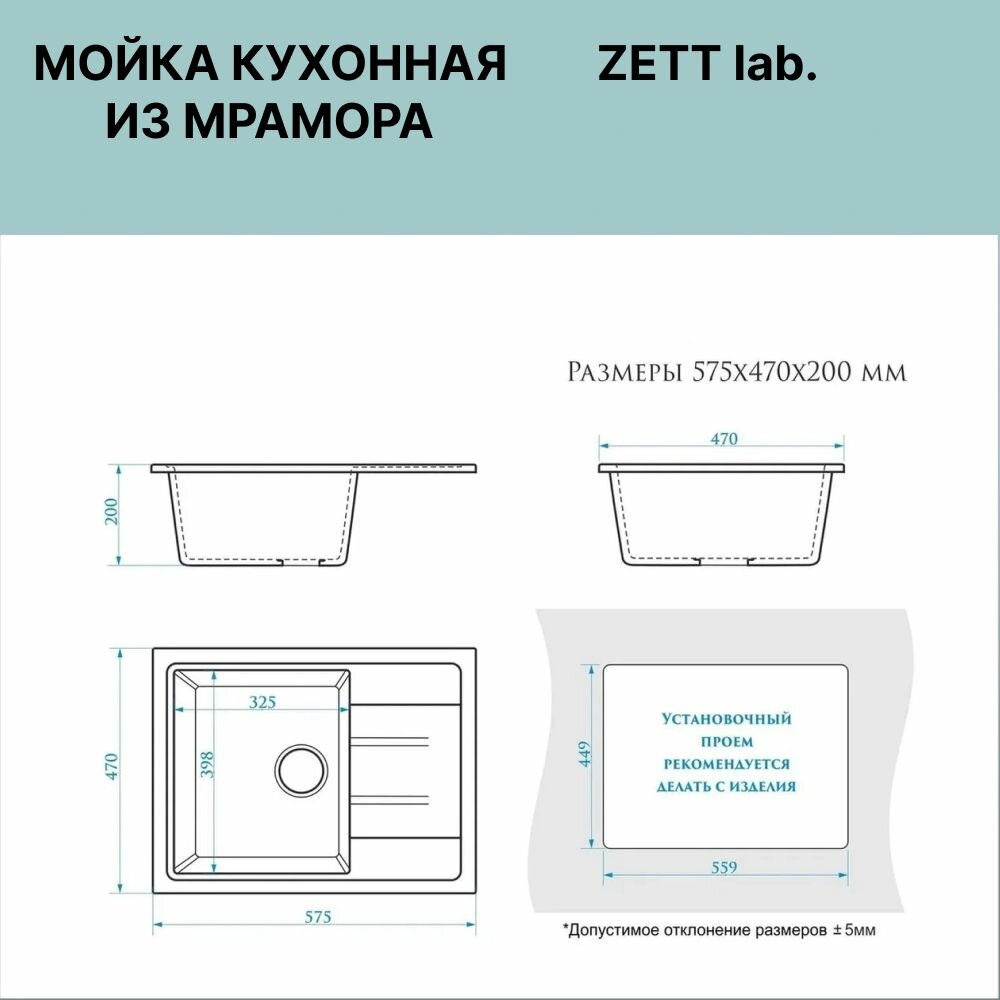 Кухонная мойка ZETT lab модель 150 (575*470) Матовая Q8 Темно-серый интересное: